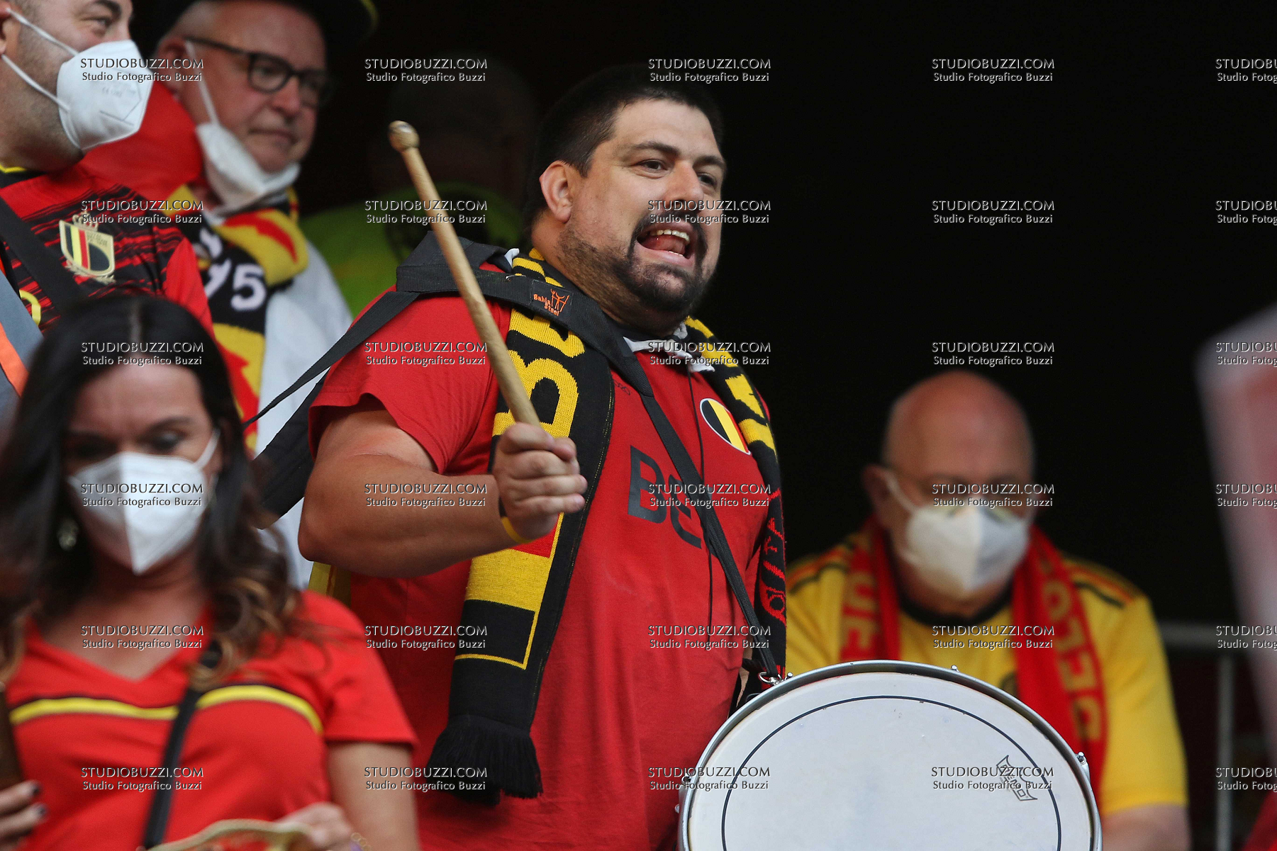 Evento: Euro 2020 quarti di finale belgio-italia 1-2; Argomento: Calcio; Periodo: 2020/21; Categoria: BELGIO; Soggetto: TIFOSI, Fan, Supporter, Belgio, UEFA EURO 2020, Quarter Final, Belgium vs Italy 1-2, Munich; Nazione: Studio Buzzi; Descrizione: PRIMO PIANO; Luogo: STADIO; Città: MONACO DI BAVIERA;