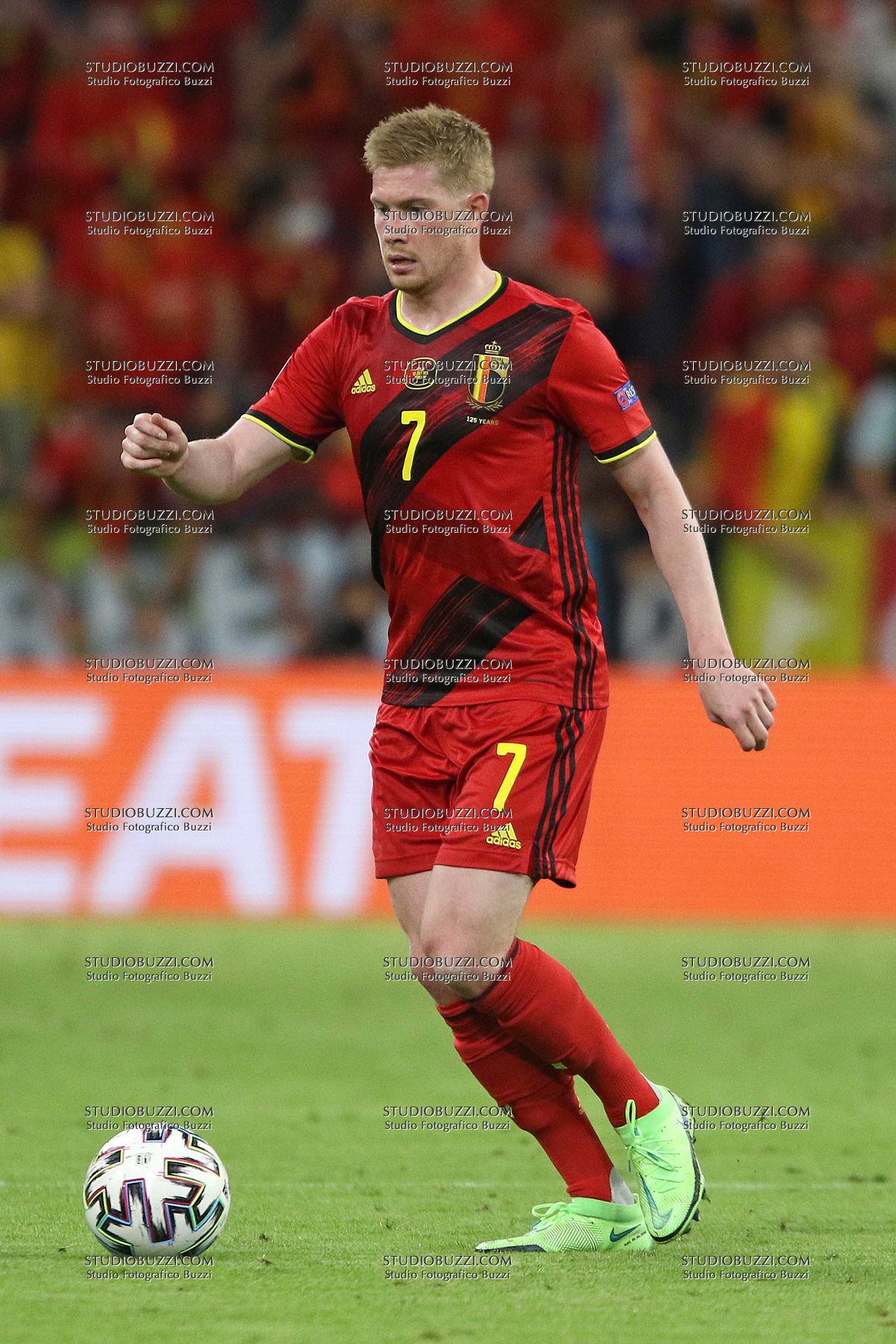 Evento: Euro 2020 quarti di finale belgio-italia 1-2; Argomento: Calcio; Periodo: 2020/21; Categoria: BELGIO; Soggetto: KEVIN DE BRUYNE, Belgio, UEFA EURO 2020, Quarter Final, Belgium vs Italy 1-2, Munich; Nazione: Studio Buzzi; Descrizione: AZIONE; Luogo: STADIO; Città: MONACO DI BAVIERA;