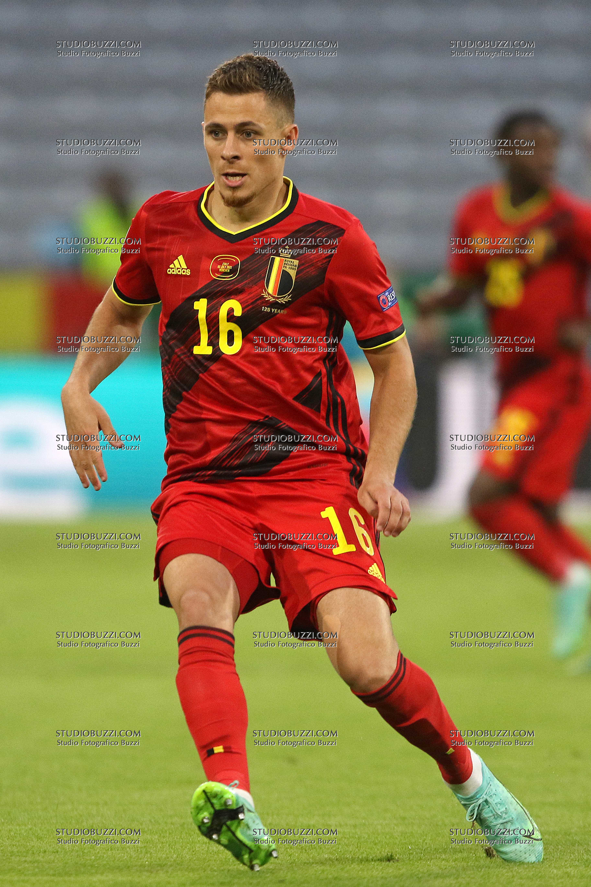 Evento: Euro 2020 quarti di finale belgio-italia 1-2; Argomento: Calcio; Periodo: 2020/21; Categoria: BELGIO; Soggetto: THORGAN HAZARD, Belgio, UEFA EURO 2020, Quarter Final, Belgium vs Italy 1-2, Munich; Nazione: Studio Buzzi; Descrizione: AZIONE; Luogo: STADIO; Città: MONACO DI BAVIERA;