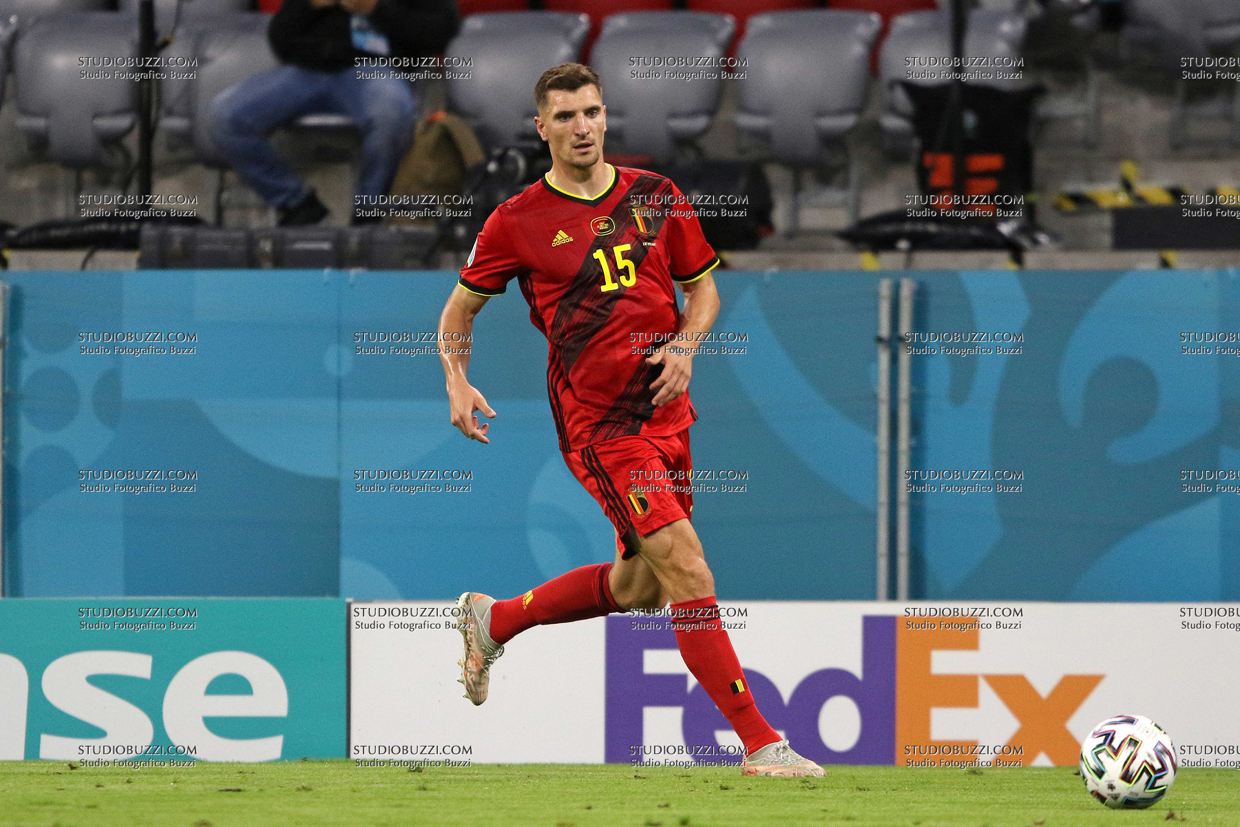 Evento: Euro 2020 quarti di finale belgio-italia 1-2; Argomento: Calcio; Periodo: 2020/21; Categoria: BELGIO; Soggetto: THOMAS MEUNIER, Belgio, UEFA EURO 2020, Quarter Final, Belgium vs Italy 1-2, Munich; Nazione: Studio Buzzi; Descrizione: AZIONE; Luogo: STADIO; Città: MONACO DI BAVIERA;