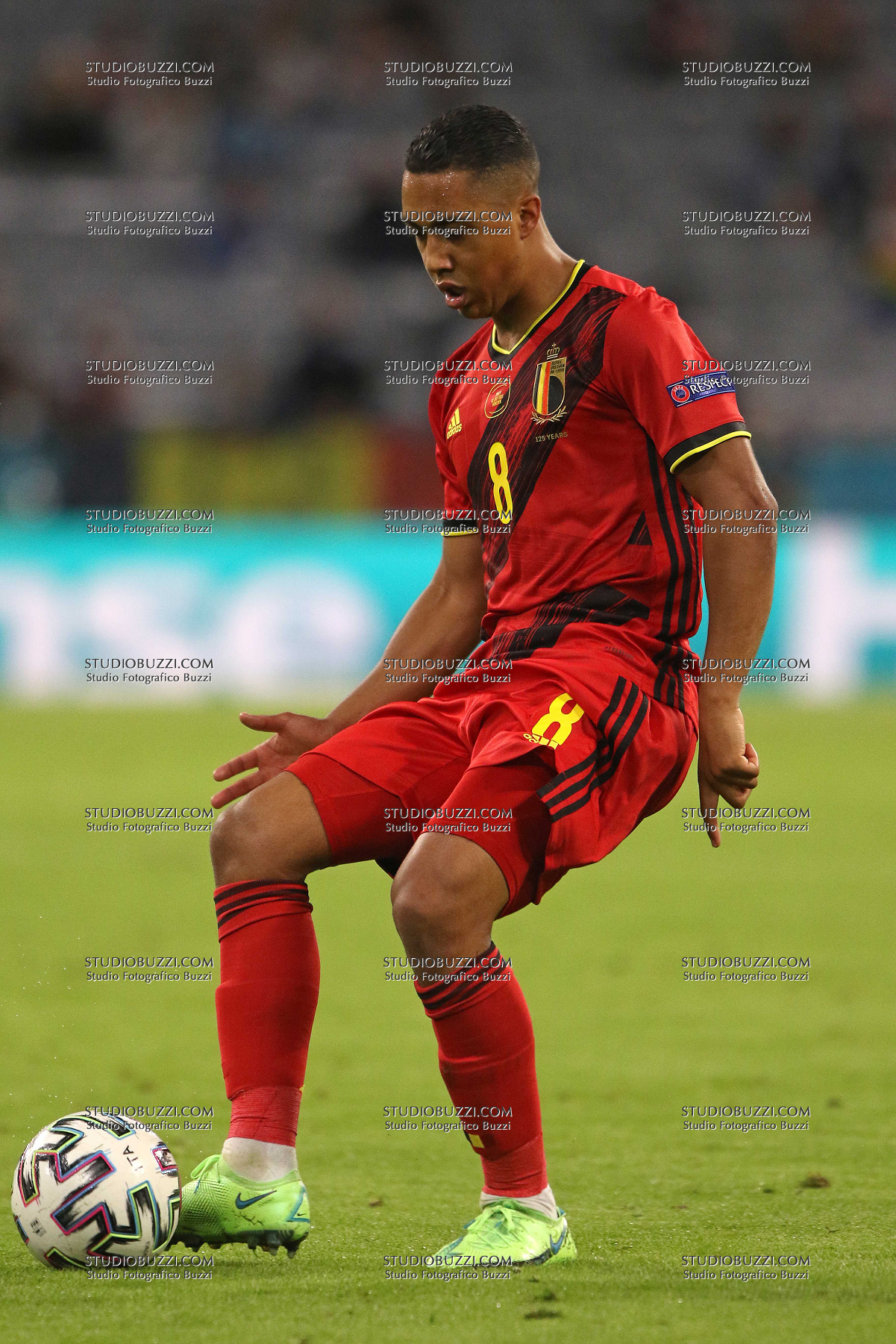 Evento: Euro 2020 quarti di finale belgio-italia 1-2; Argomento: Calcio; Periodo: 2020/21; Categoria: BELGIO; Soggetto: YOURI TIELEMANS, Belgio, UEFA EURO 2020, Quarter Final, Belgium vs Italy 1-2, Munich; Nazione: Studio Buzzi; Descrizione: AZIONE; Luogo: STADIO; Città: MONACO DI BAVIERA;