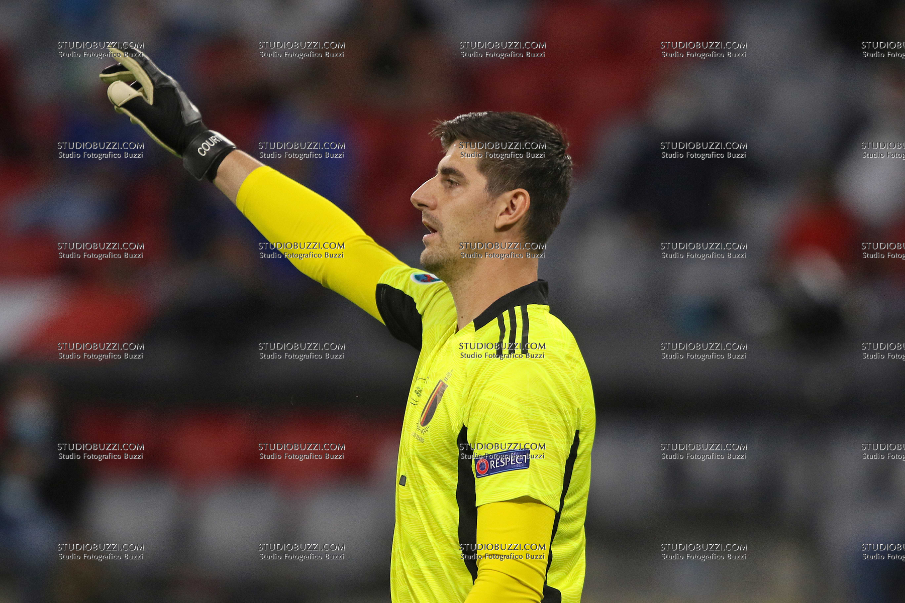 Evento: Euro 2020 quarti di finale belgio-italia 1-2; Argomento: Calcio; Periodo: 2020/21; Categoria: BELGIO; Soggetto: THIBAUT COURTOIS, Belgio, UEFA EURO 2020, Quarter Final, Belgium vs Italy 1-2, Munich; Nazione: Studio Buzzi; Descrizione: AZIONE; Luogo: STADIO; Città: MONACO DI BAVIERA;