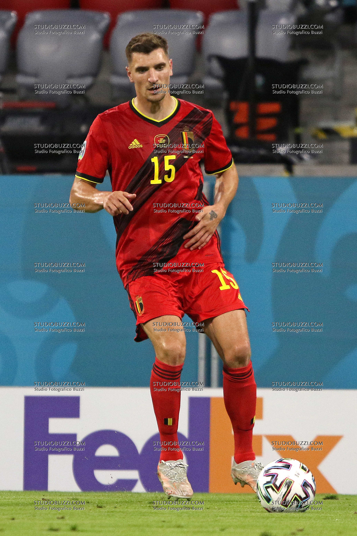 Evento: Euro 2020 quarti di finale belgio-italia 1-2; Argomento: Calcio; Periodo: 2020/21; Categoria: BELGIO; Soggetto: THOMAS MEUNIER, Belgio, UEFA EURO 2020, Quarter Final, Belgium vs Italy 1-2, Munich; Nazione: Studio Buzzi; Descrizione: AZIONE; Luogo: STADIO; Città: MONACO DI BAVIERA;