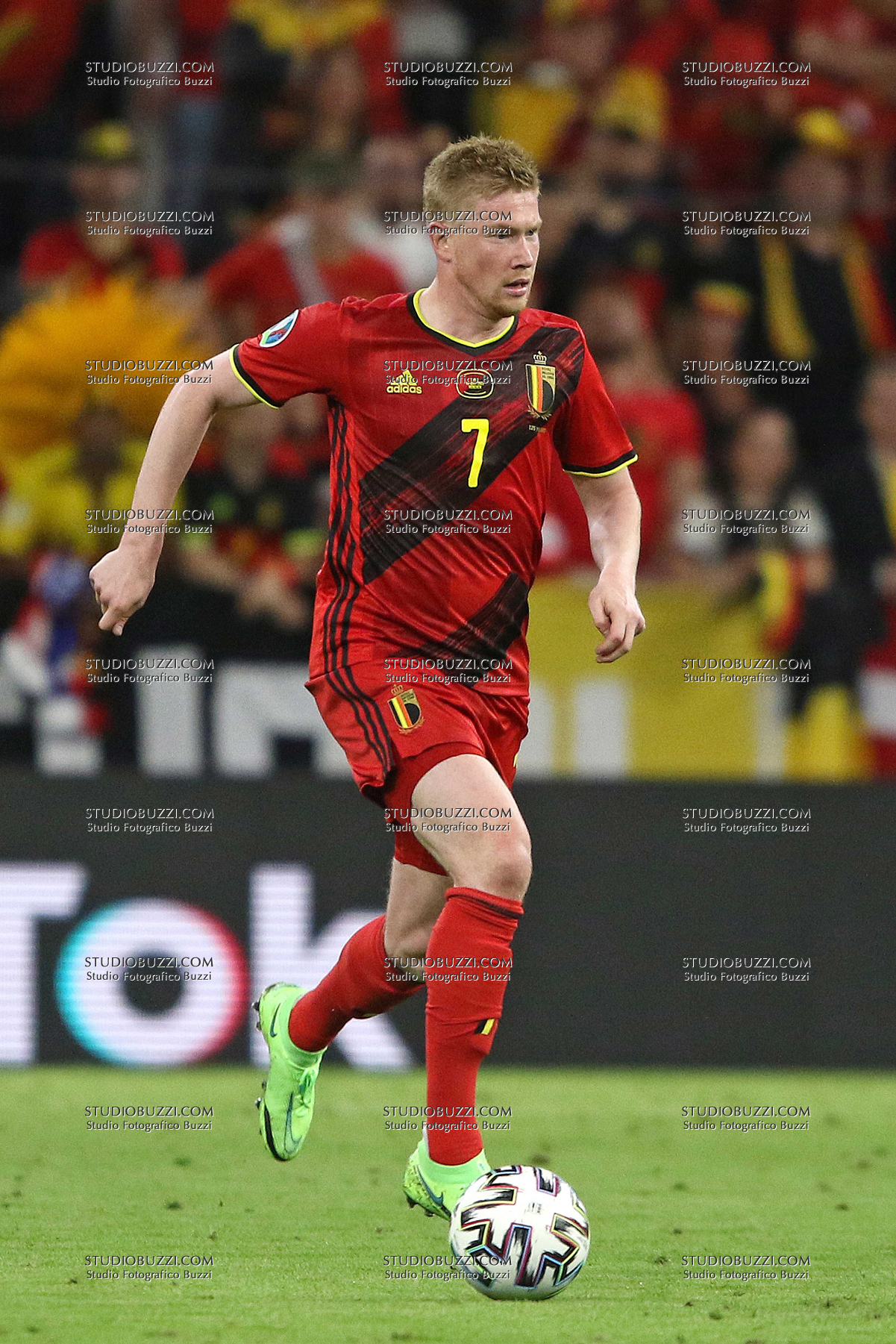 Evento: Euro 2020 quarti di finale belgio-italia 1-2; Argomento: Calcio; Periodo: 2020/21; Categoria: BELGIO; Soggetto: KEVIN DE BRUYNE, Belgio, UEFA EURO 2020, Quarter Final, Belgium vs Italy 1-2, Munich; Nazione: Studio Buzzi; Descrizione: AZIONE; Luogo: STADIO; Città: MONACO DI BAVIERA;
