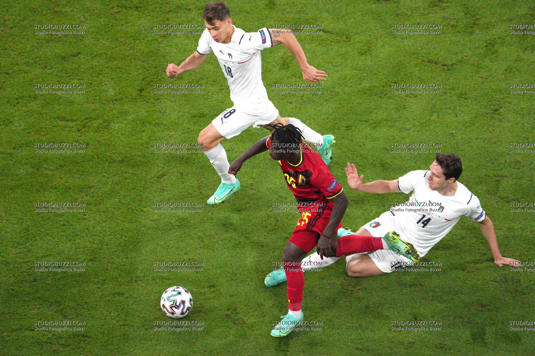 Evento: Euro 2020 quarti di finale belgio-italia 1-2; Argomento: Calcio; Periodo: 2020/21; Categoria: ITALIA ITALY BELGIUM BELGIO; Soggetto: Euro 2020, Quarter Final, Belgium Belgio-Italy Italia 1-2, JEREMY DOKU, NICOLO BARELLA, FEDERICO CHIESA; Descrizione: CONTRASTO; Luogo: STADIO; Città: MONACO DI BAVIERA;