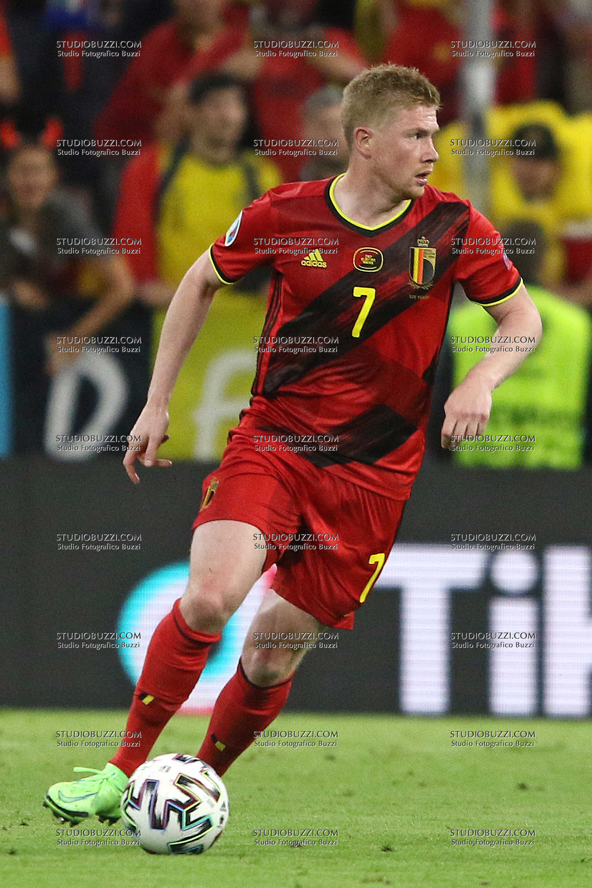 Evento: Euro 2020 quarti di finale belgio-italia 1-2; Argomento: Calcio; Periodo: 2020/21; Categoria: BELGIO; Soggetto: KEVIN DE BRUYNE, Belgio, UEFA EURO 2020, Quarter Final, Belgium vs Italy 1-2, Munich; Nazione: Studio Buzzi; Descrizione: AZIONE; Luogo: STADIO; Città: MONACO DI BAVIERA;