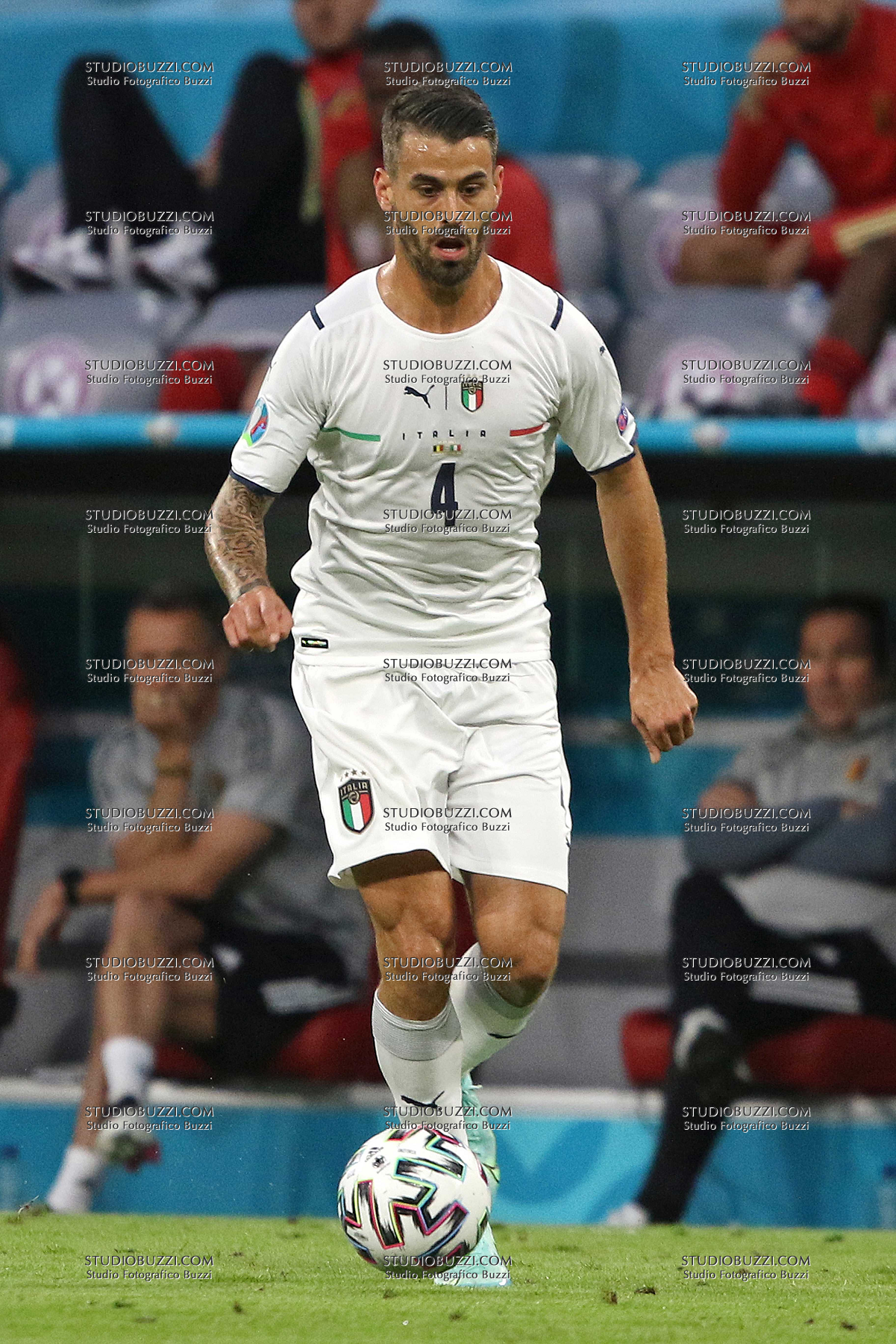 Evento: Euro 2020 quarti di finale belgio-italia 1-2; Argomento: Calcio; Periodo: 2020/21; Categoria: ITALIA; Soggetto: LEONARDO SPINAZZOLA, Italia, UEFA EURO 2020, Quarter Final, Belgium vs Italy 1-2, Munich; Nazione: Studio Buzzi; Descrizione: AZIONE; Luogo: STADIO; Città: MONACO DI BAVIERA;