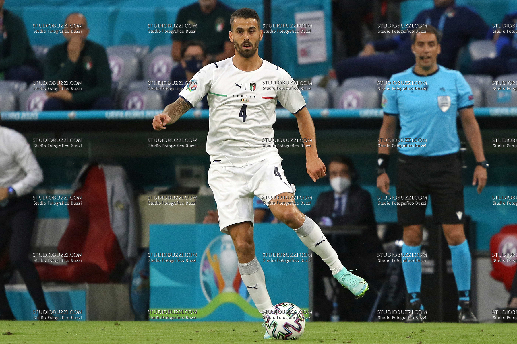 Evento: Euro 2020 quarti di finale belgio-italia 1-2; Argomento: Calcio; Periodo: 2020/21; Categoria: ITALIA; Soggetto: LEONARDO SPINAZZOLA, Italia, UEFA EURO 2020, Quarter Final, Belgium vs Italy 1-2, Munich; Nazione: Studio Buzzi; Descrizione: AZIONE; Luogo: STADIO; Città: MONACO DI BAVIERA;