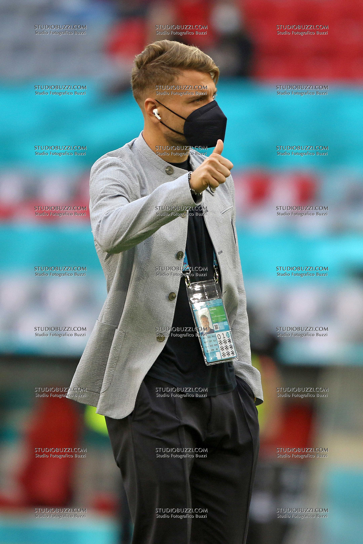 Evento: Euro 2020 quarti di finale belgio-italia 1-2; Argomento: Calcio; Periodo: 2020/21; Categoria: ITALIA; Soggetto: CIRO IMMOBILE, Italia, con divisa Giorgio Armani, UEFA EURO 2020, Quarter Final, Belgium vs Italy 1-2, Munich; Nazione: Studio Buzzi; Descrizione: BORGHESE GESTI; Luogo: STADIO; Città: MONACO DI BAVIERA;
