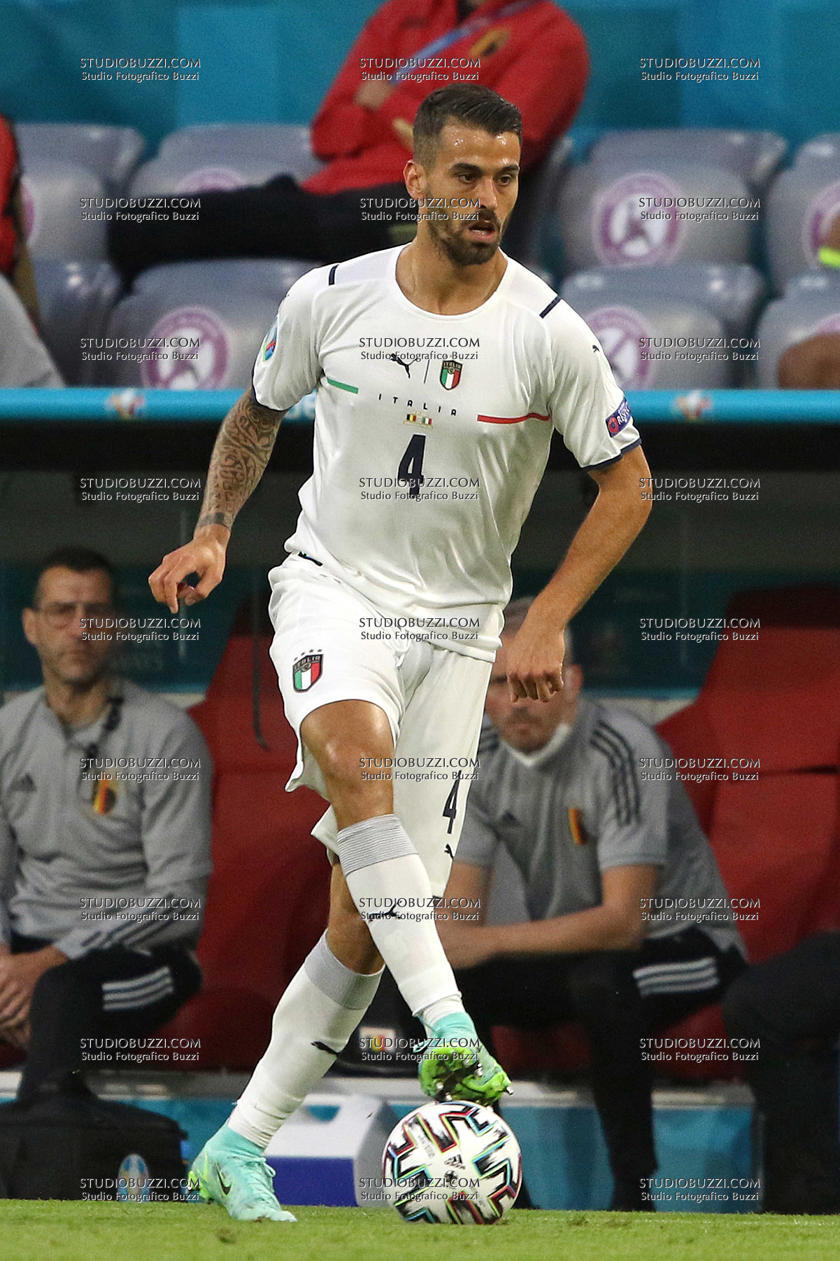 Evento: Euro 2020 quarti di finale belgio-italia 1-2; Argomento: Calcio; Periodo: 2020/21; Categoria: ITALIA; Soggetto: LEONARDO SPINAZZOLA, Italia, UEFA EURO 2020, Quarter Final, Belgium vs Italy 1-2, Munich; Nazione: Studio Buzzi; Descrizione: AZIONE; Luogo: STADIO; Città: MONACO DI BAVIERA;