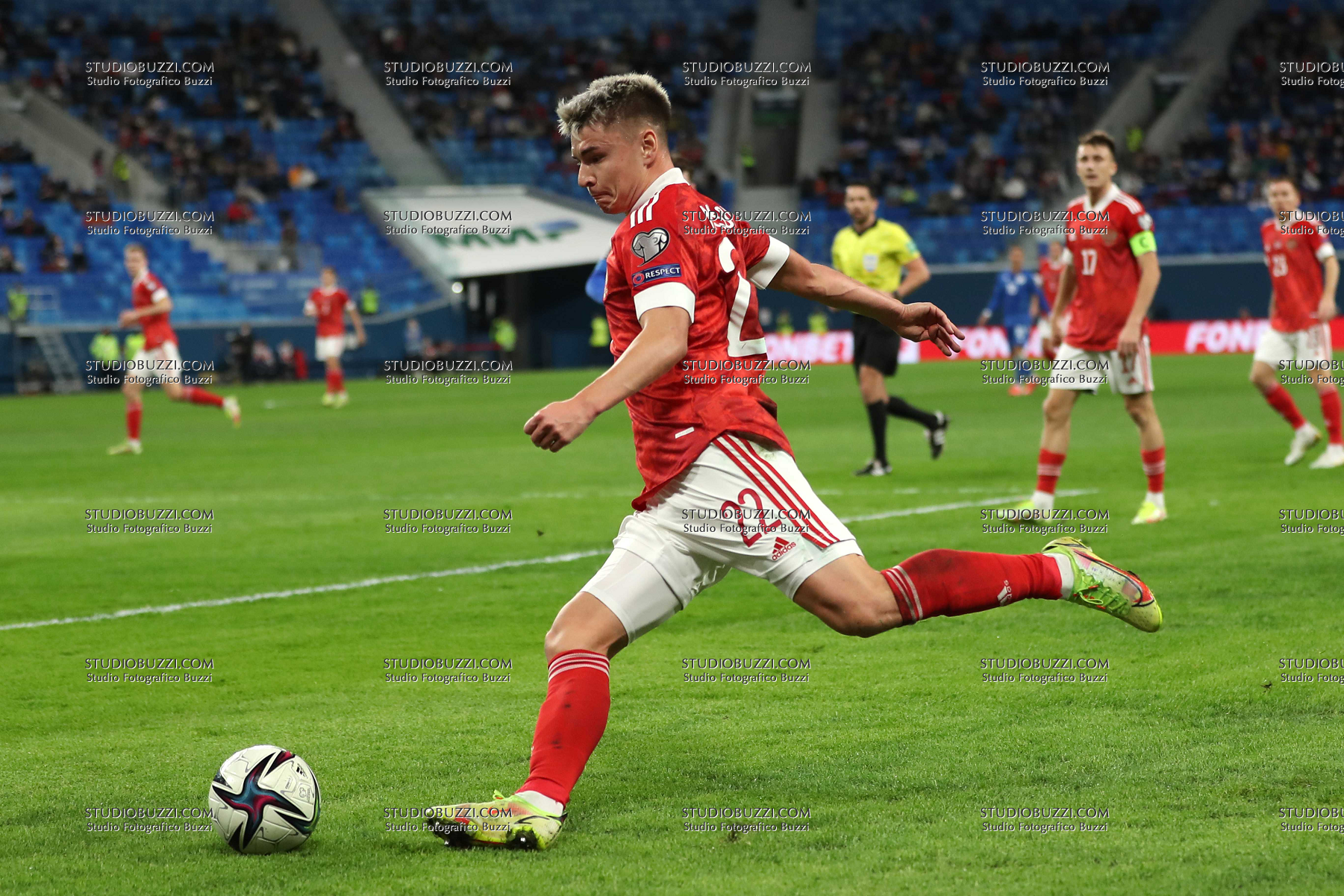 Evento: Qualificazioni mondiali russia-cipro 6-0; Argomento: Calcio; Periodo: 2021/22; Categoria: RUSSIA; Soggetto: ANDREJ MOSTOVOJ, Russia, FIFA World Cup 2022 Qualifying Round, Russi vs Cyprus 6-0, San Pietroburgo; Nazione: Studio Buzzi; Descrizione: AZIONE; Luogo: STADIO; Città: SAN PIETROBURGO;