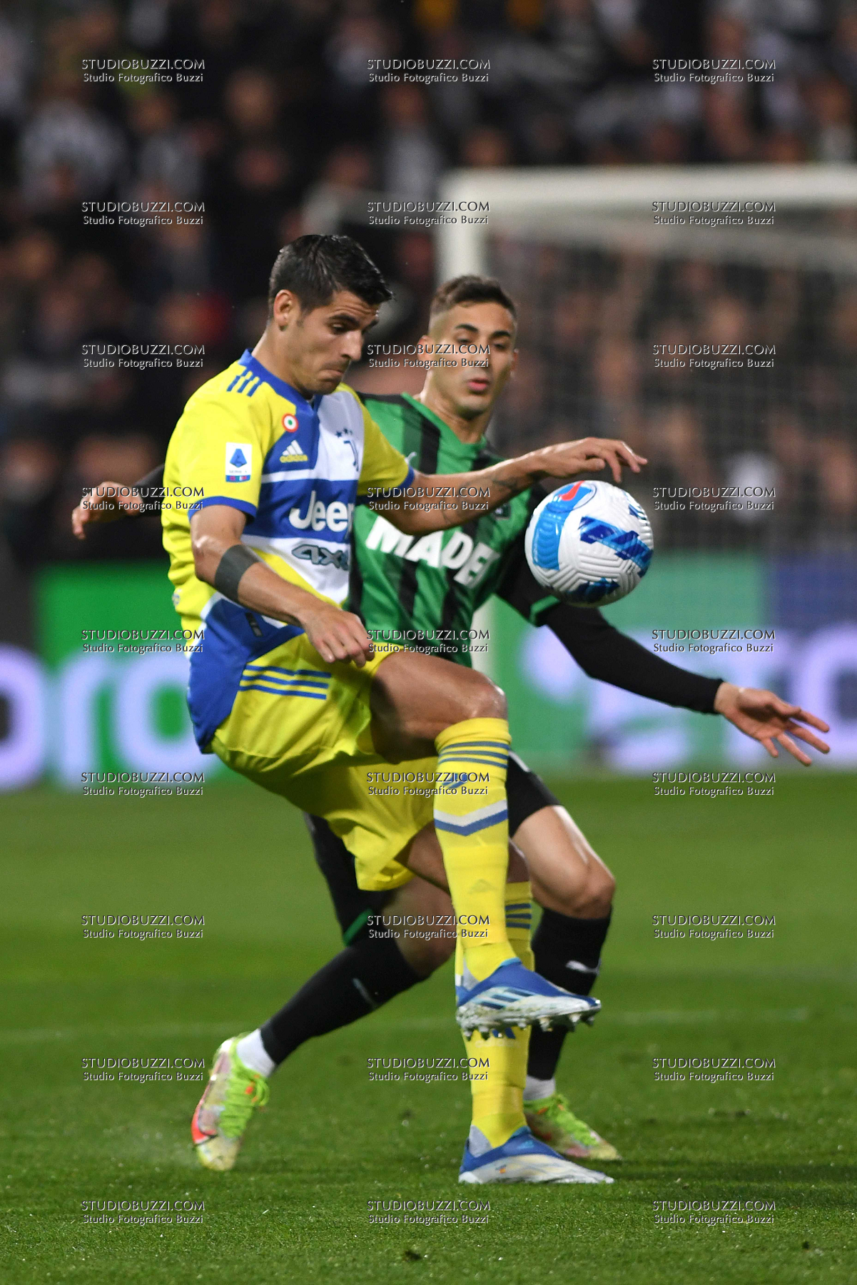 Evento: Campionato serie a 2021-22 sassuolo-juventus 1-2; Argomento: Calcio; Periodo: 2021/22; Categoria: SASSUOLO - JUVENTUS; Soggetto: Serie A Championship 2021-22, Sassuolo-Juventus 1-2, ALVARO MORATA, MERT MULDUR; Descrizione: CONTRASTO; Luogo: STADIO; Città: REGGIO EMILIA;