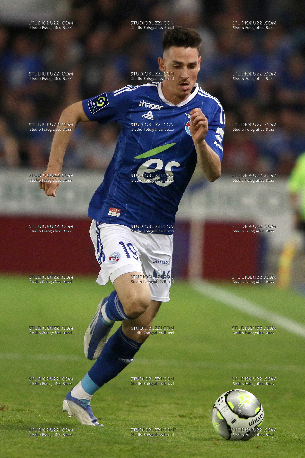 Evento: Ligue 1 2021-22 racing strasburgo-clermont foot 1-0 - maglia 202; Argomento: Calcio; Periodo: 2021/22; Categoria: RACING STRASBURGO STRASBOURG; Soggetto: ANTHONY CACI, Racing Strasburgo, Nuova Maglia, New shirt, kit, Stagione, Season, 2022-23, Ligue 1, Racing Strasbourg vs Clermont Foot 1-0, Strasbourg; Nazione: Studio Fotografico Buzzi Srl; Descrizione: AZIONE; Luogo: STADIO; Città: STRASBURGO;