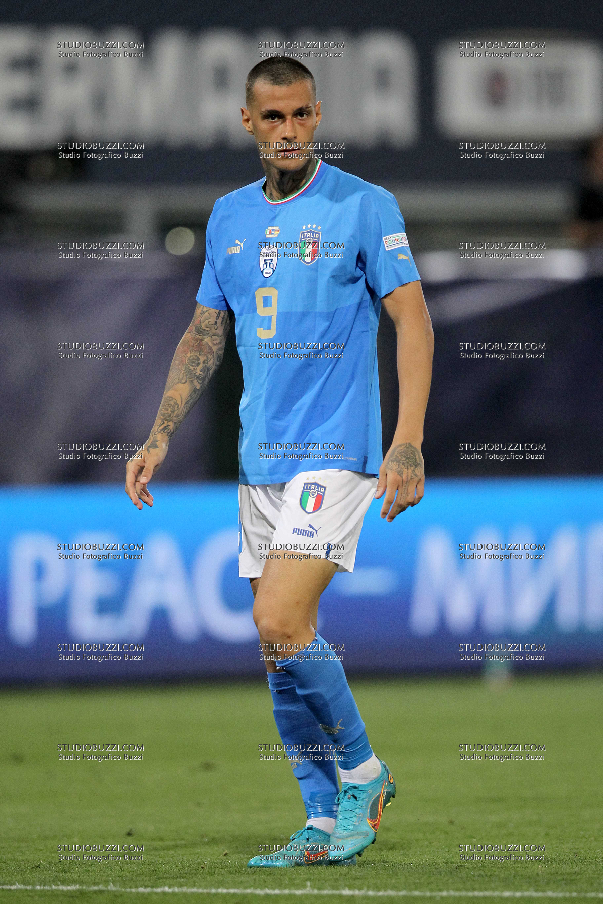 Evento: Uefa nations league 2023 italia-germania 1-1; Argomento: Calcio; Periodo: 2021/22; Categoria: ITALIA; Soggetto: GIANLUCA SCAMACCA, Italia, UEFA Nations League 2023, Finale, Italy vs Germany 1-1, Bologna; Nazione: Studio Buzzi; Descrizione: AZIONE; Luogo: STADIO; Città: BOLOGNA;