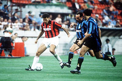 Evento: Trofeo luigi berlusconi 1992-93 milan-inter 1-0; Argomento: Calcio; Periodo: 1992/93; Categoria: MILAN - INTER; Soggetto: MAURO TASSOTTI, SALVATORE SCHILLACI; Nazione: Studio Buzzi; Descrizione: CONTRASTO; Luogo: STADIO; Città: MILANO;