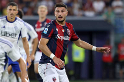 RICCARDO ORSOLINI, Bologna, Serie A, 2025-26, Bologna vs Como 1-0, 30-08-2025, Azione, Contrasto, Action, Close up