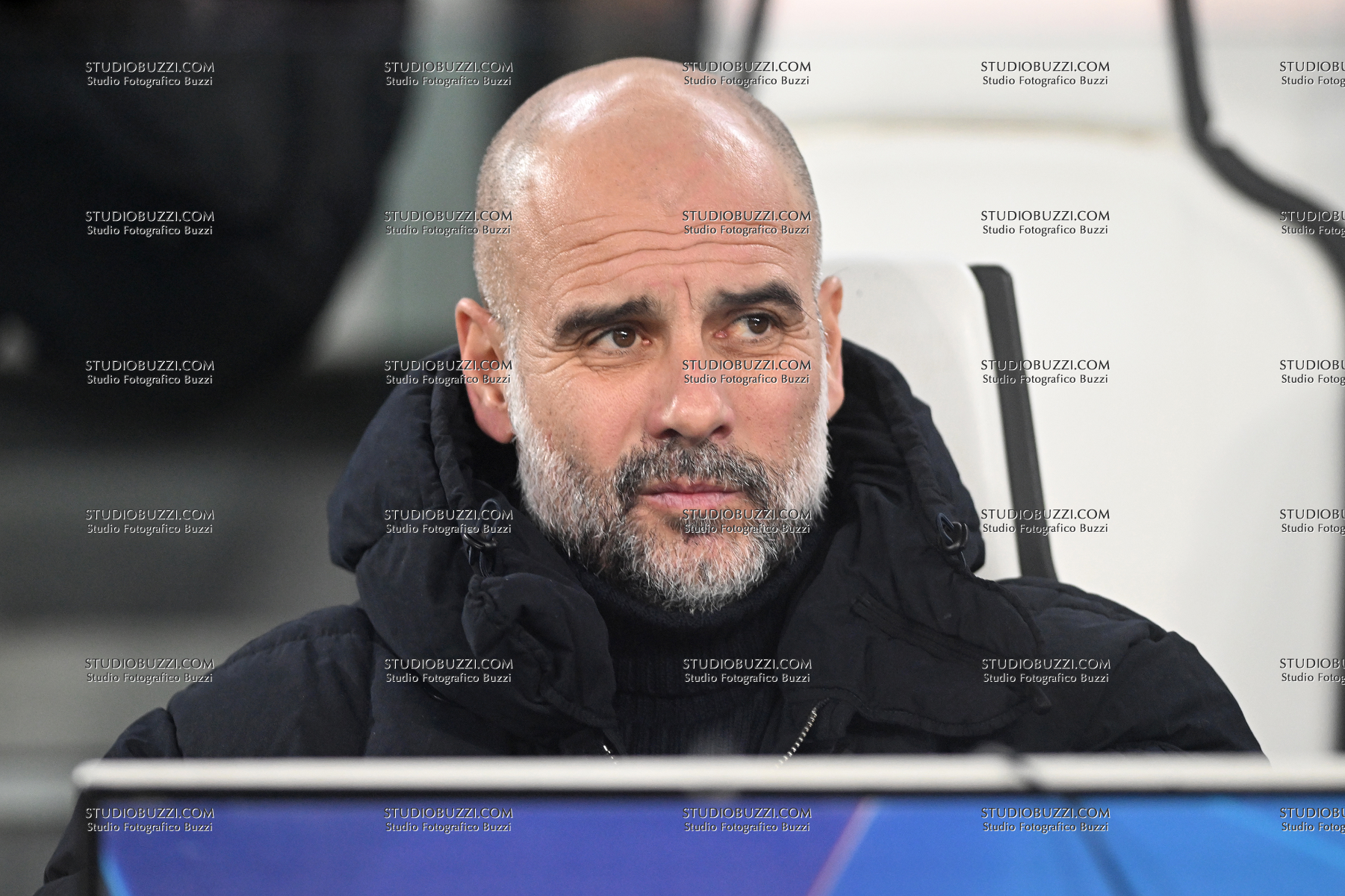 JOSEP PEP GUARDIOLA, Coach, Champions League 2024-25, Juventus-Manchester City 2-0, primo piano, head shot, close up, single shot