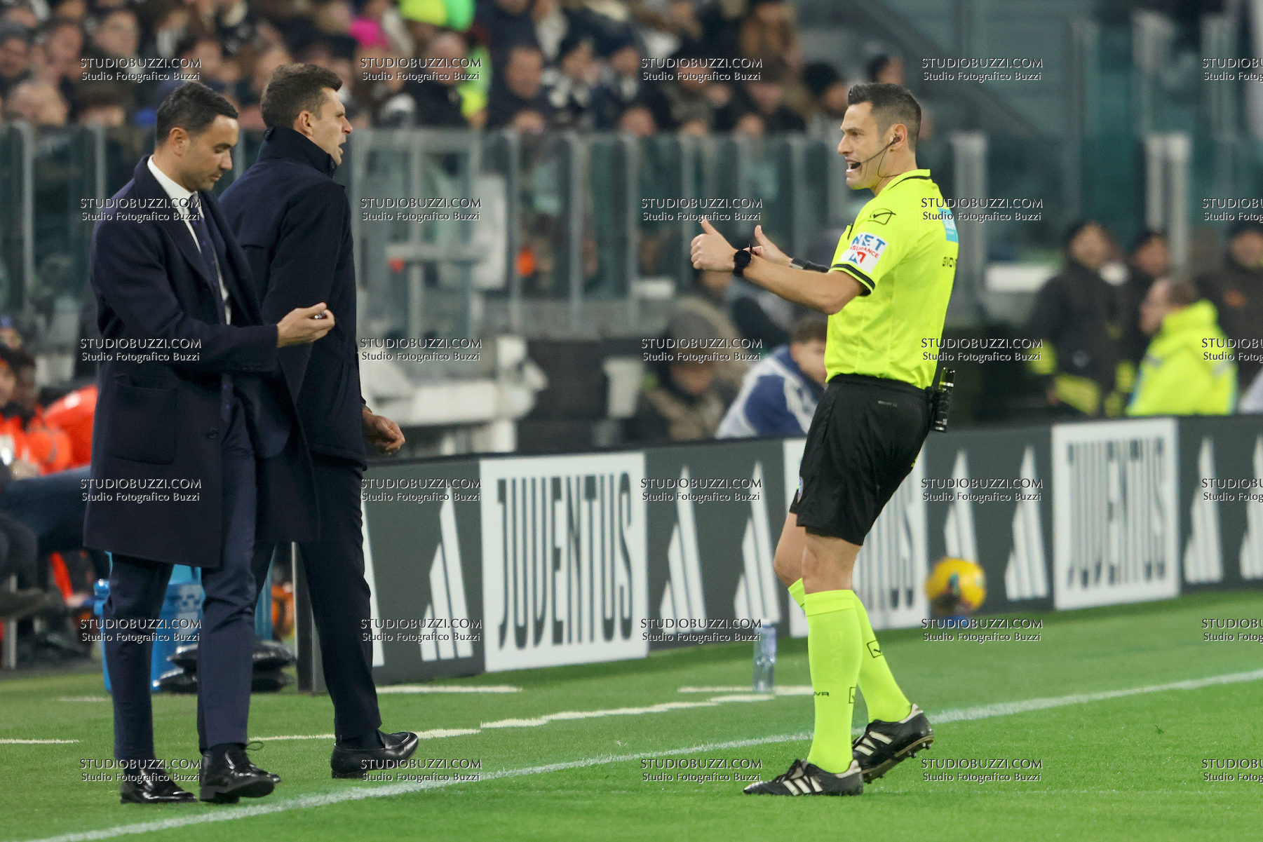 MAURIZIO MARIANI, Arbitro, Referee, RAFFAELE PALLADINO, Fiorentina, THIAGO MOTTA, Juventus, Serie A, 2024-25, Juventus vs Fiorentina 2-2, 29-12-2024, Azione, Action, Single shot