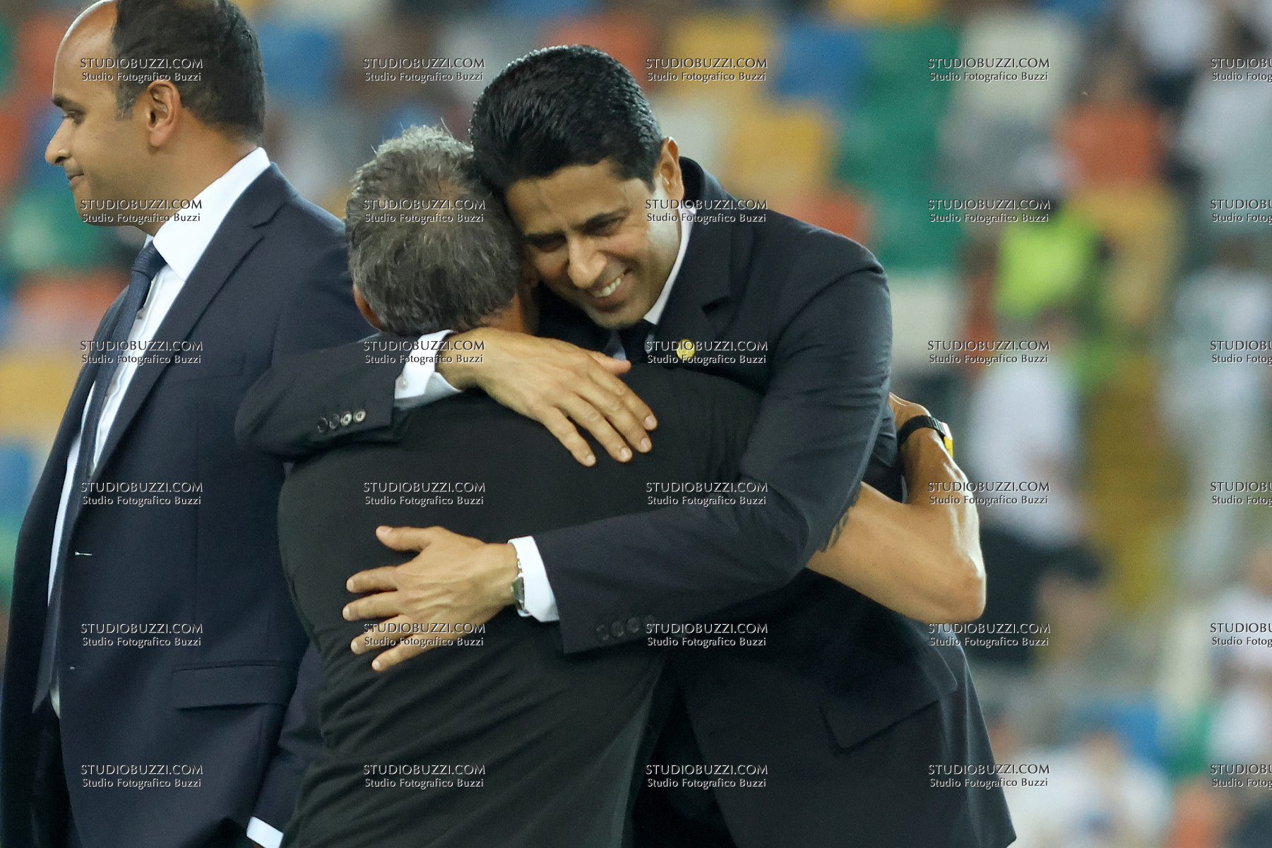 NASSER AL KHELAIFI, LUIS ENRIQUE MARTINEZ GARCIA, PSG, UEFA Supercup Final 2025, Supercoppa, Paris Saint Germain vs Tottenham Hotspur 2-2 (4-3 apk), 13-08-2025, Esultanza, Celebration, Jubel