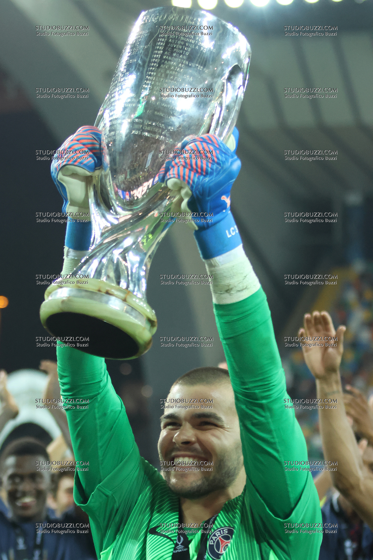 LUCAS CHEVALIER, PSG, UEFA Supercup Final 2025, Supercoppa, Paris Saint Germain vs Tottenham Hotspur 2-2 (4-3 apk), 13-08-2025, Esultanza, Celebration, Jubel, Con coppa, with Cup