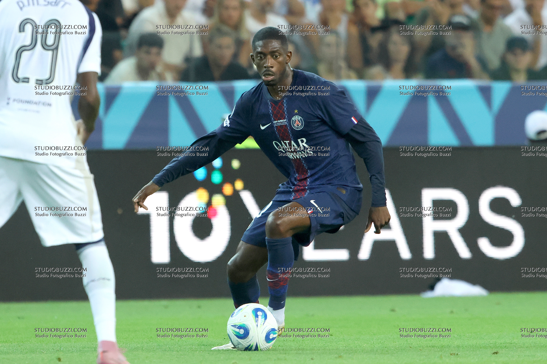 OUSMANE DEMBELE, PSG, UEFA Supercup Final 2025, Supercoppa, Paris Saint Germain vs Tottenham Hotspur 2-2 (4-3 apk), 13-08-2025, Azione, Action, Single shot, Contrasto