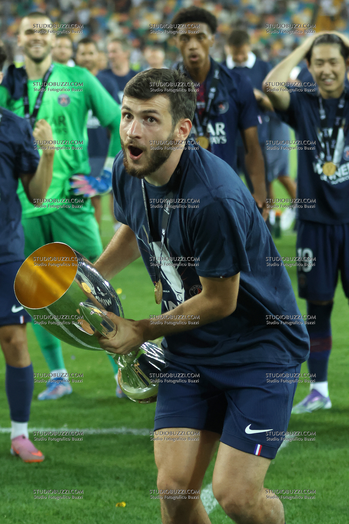 KHVICHA KVARATSKHELIA, PSG, UEFA Supercup Final 2025, Supercoppa, Paris Saint Germain vs Tottenham Hotspur 2-2 (4-3 apk), 13-08-2025, Esultanza, Celebration, Jubel, Con coppa, with Cup