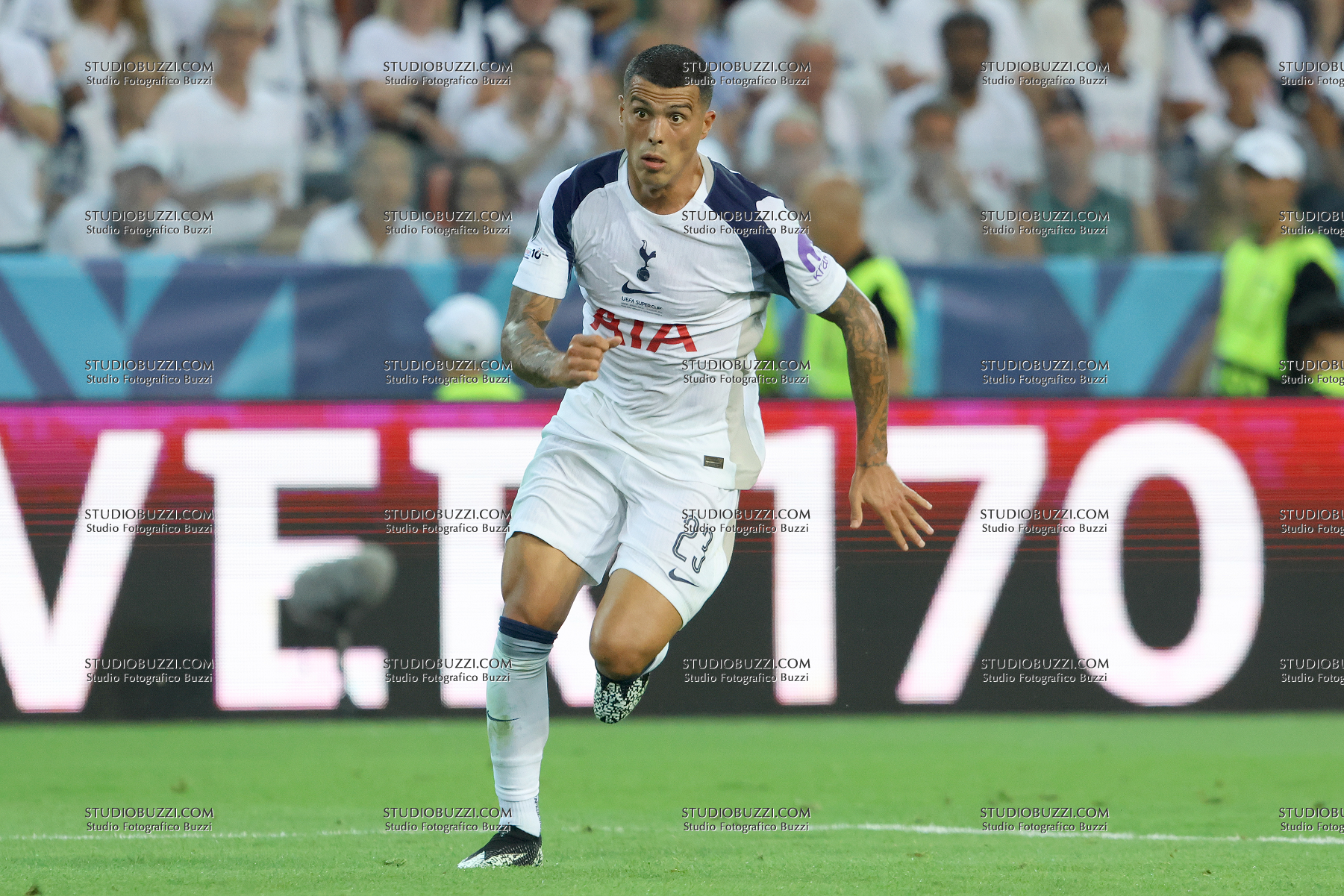 PEDRO PORRO, Tottenham Hotspur, UEFA Supercup Final 2025, Supercoppa, Paris Saint Germain vs Tottenham Hotspur 2-2 (4-3 apk), 13-08-2025, Azione, Action, Single shot