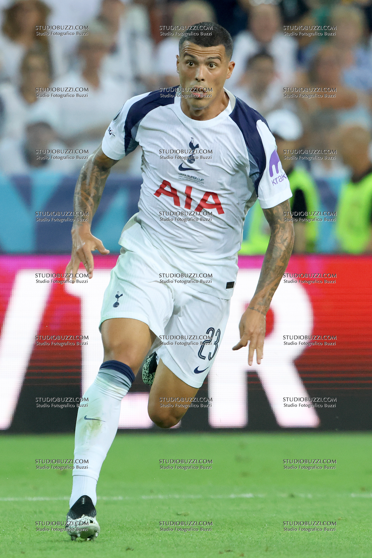 PEDRO PORRO, Tottenham Hotspur, UEFA Supercup Final 2025, Supercoppa, Paris Saint Germain vs Tottenham Hotspur 2-2 (4-3 apk), 13-08-2025, Azione, Action, Single shot