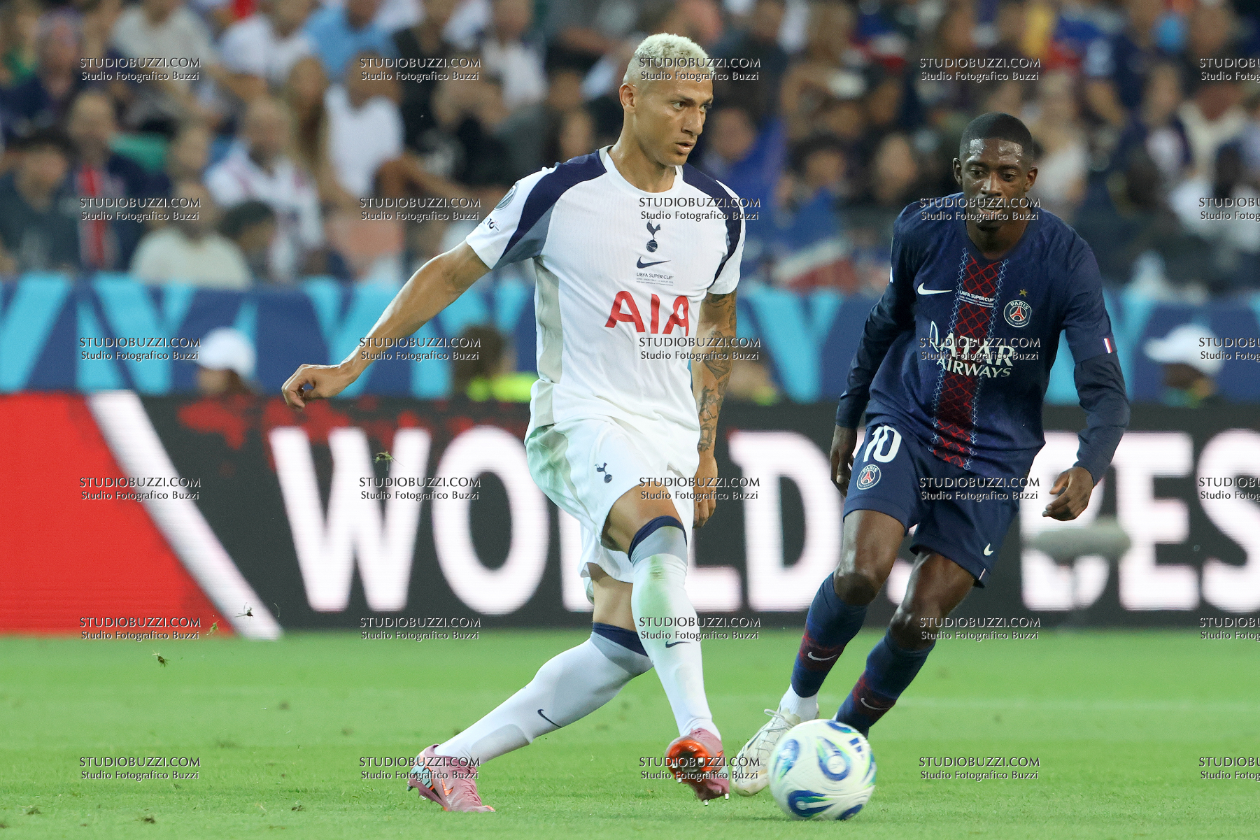 RICHARLISON DE ANDRADE, Tottenham Hotspur, WILLIAN PANCHO, PSG, UEFA Supercup Final 2025, Supercoppa, Paris Saint Germain vs Tottenham Hotspur 2-2 (4-3 apk), 13-08-2025, Contrasto, Action, Azione