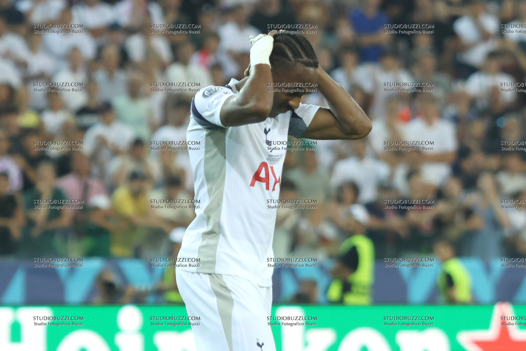MATHYS TEL, Tottenham Hotspur, UEFA Supercup Final 2025, Supercoppa, Paris Saint Germain vs Tottenham Hotspur 2-2 (4-3 apk), 13-08-2025, Azione, Action, Close up, Disappointed, Delusione