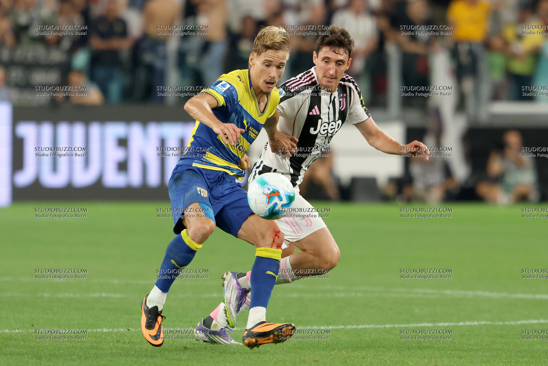 PONTUS ALMQVIST, Parma, ANDREA CAMBIASO, Juventus, Serie A, 2025-26, Juventus vs Parma 2-0, 24-08-2025, Contrasto, Action