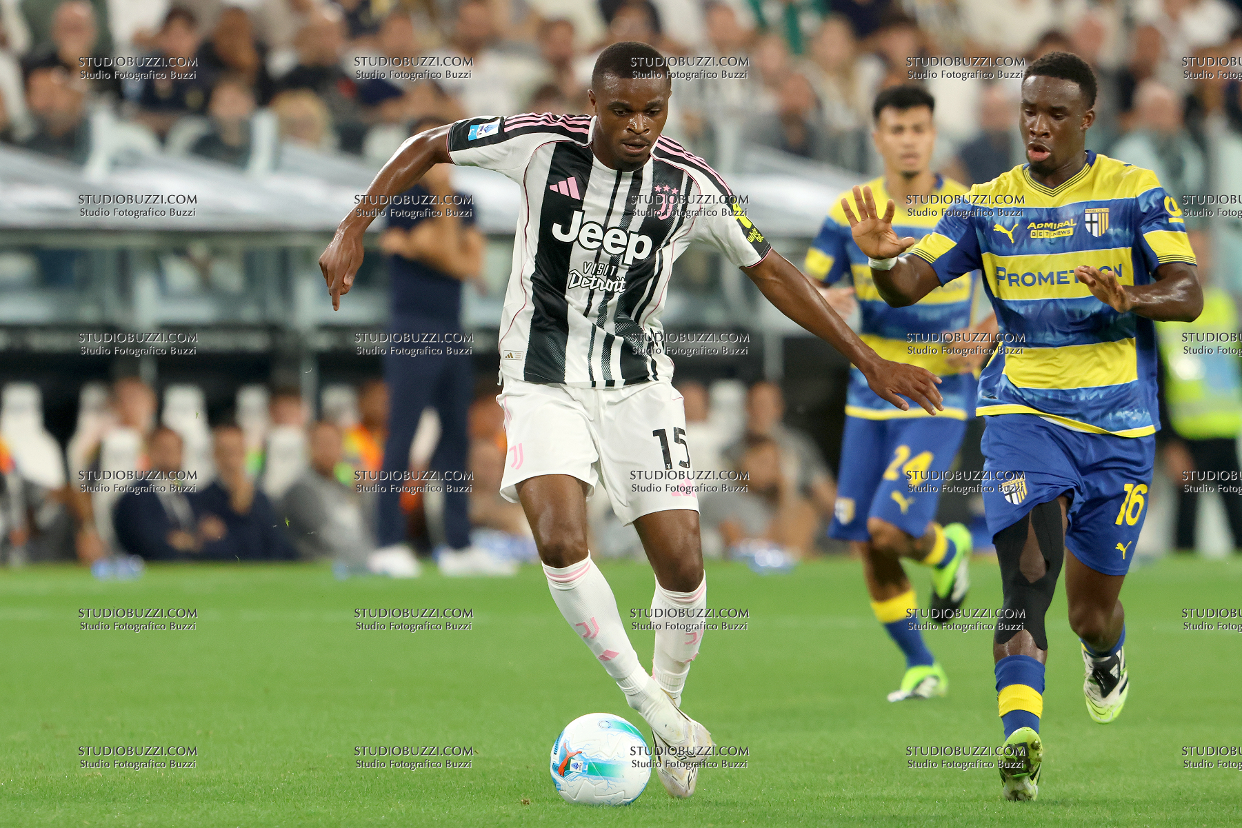PIERRE KALULU, Juventus, MANDELA LAMINE KEITA, Parma, Serie A, 2025-26, Juventus vs Parma 2-0, 24-08-2025, Contrasto, Action