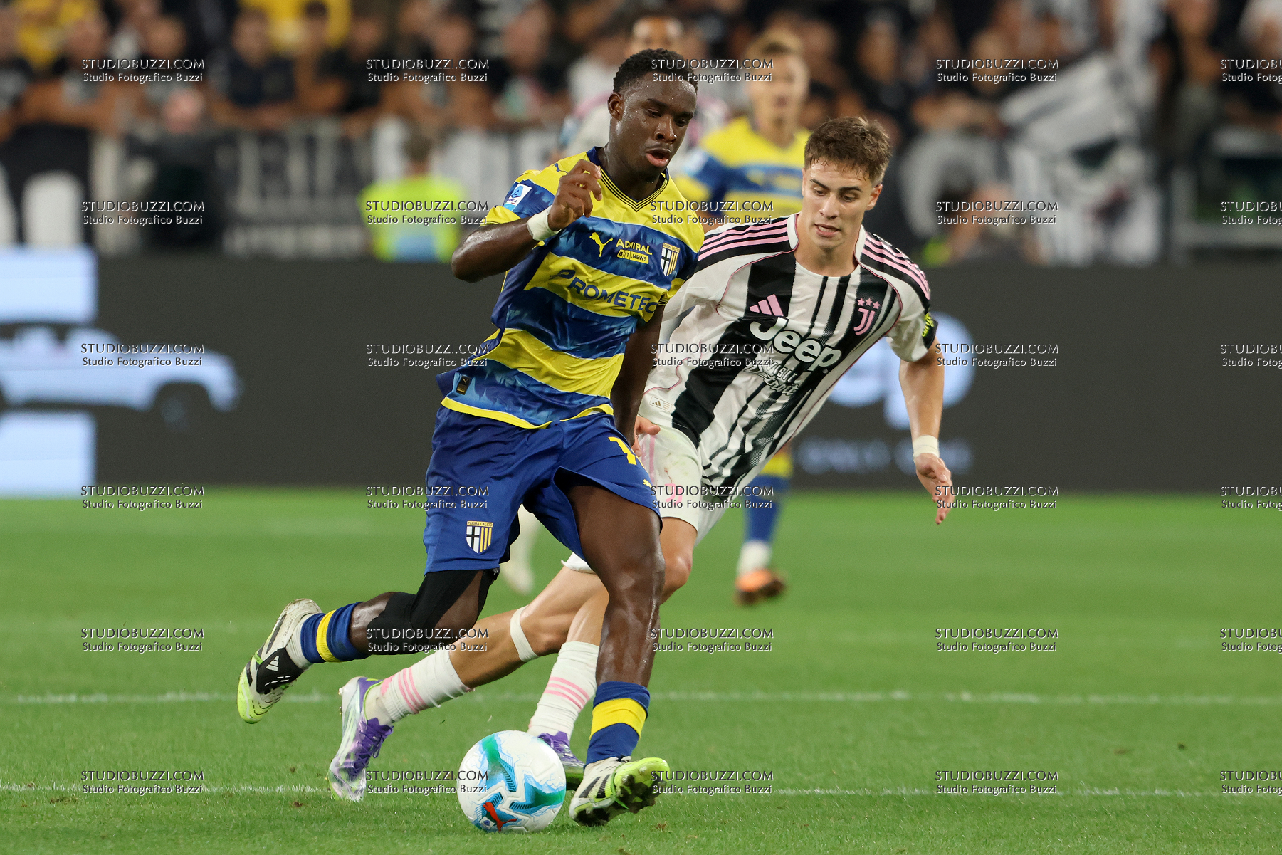 MANDELA LAMINE KEITA, Parma, KENAN YILDIZ, Juventus, Serie A, 2025-26, Juventus vs Parma 2-0, 24-08-2025, Contrasto, Action