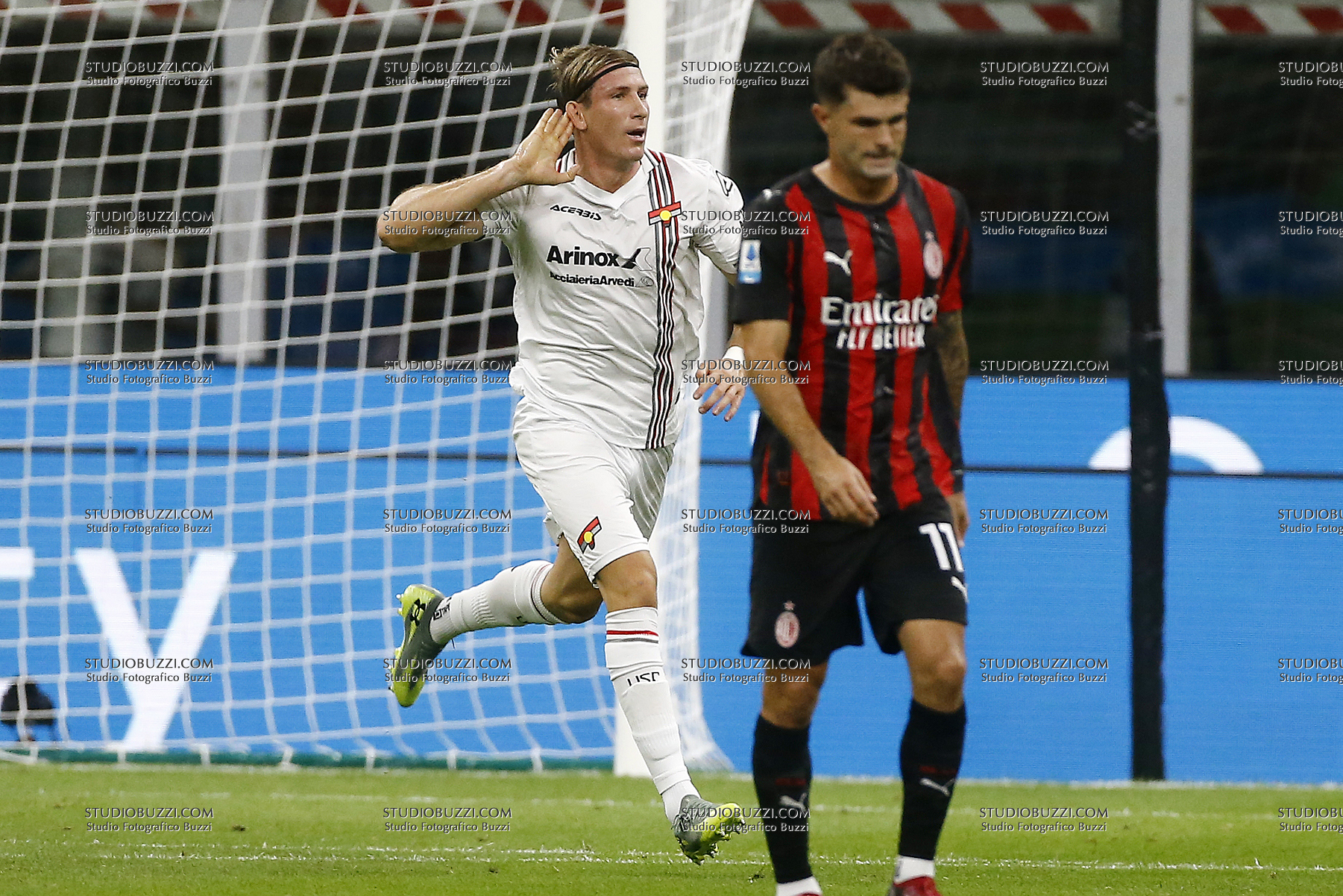 FEDERICO BASCHIROTTO, Cremonese, Serie A, 2025-26, Milan vs Cremonese 23-08-2025, Esultanza, Celebration, Jubel