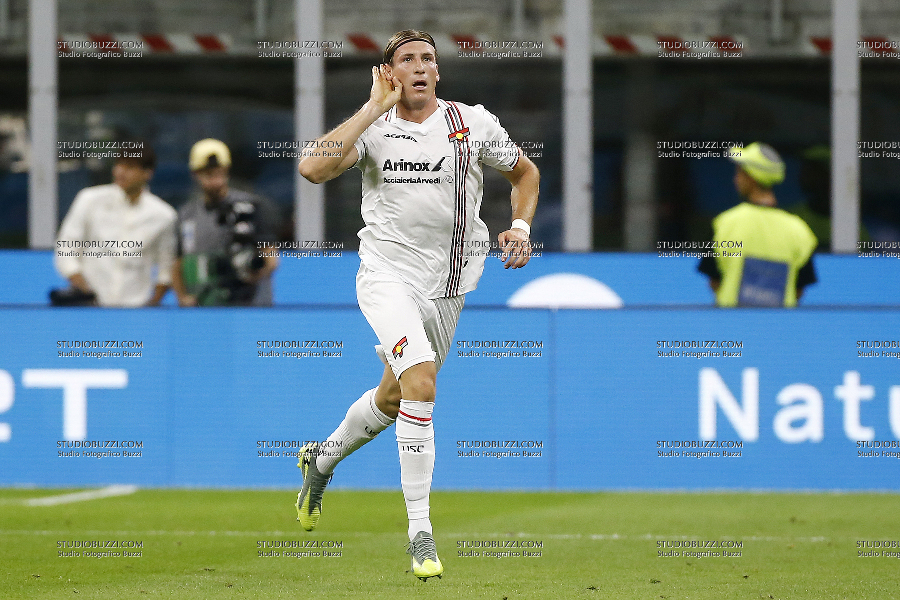 FEDERICO BASCHIROTTO, Cremonese, Serie A, 2025-26, Milan vs Cremonese 23-08-2025, Esultanza, Celebration, Jubel