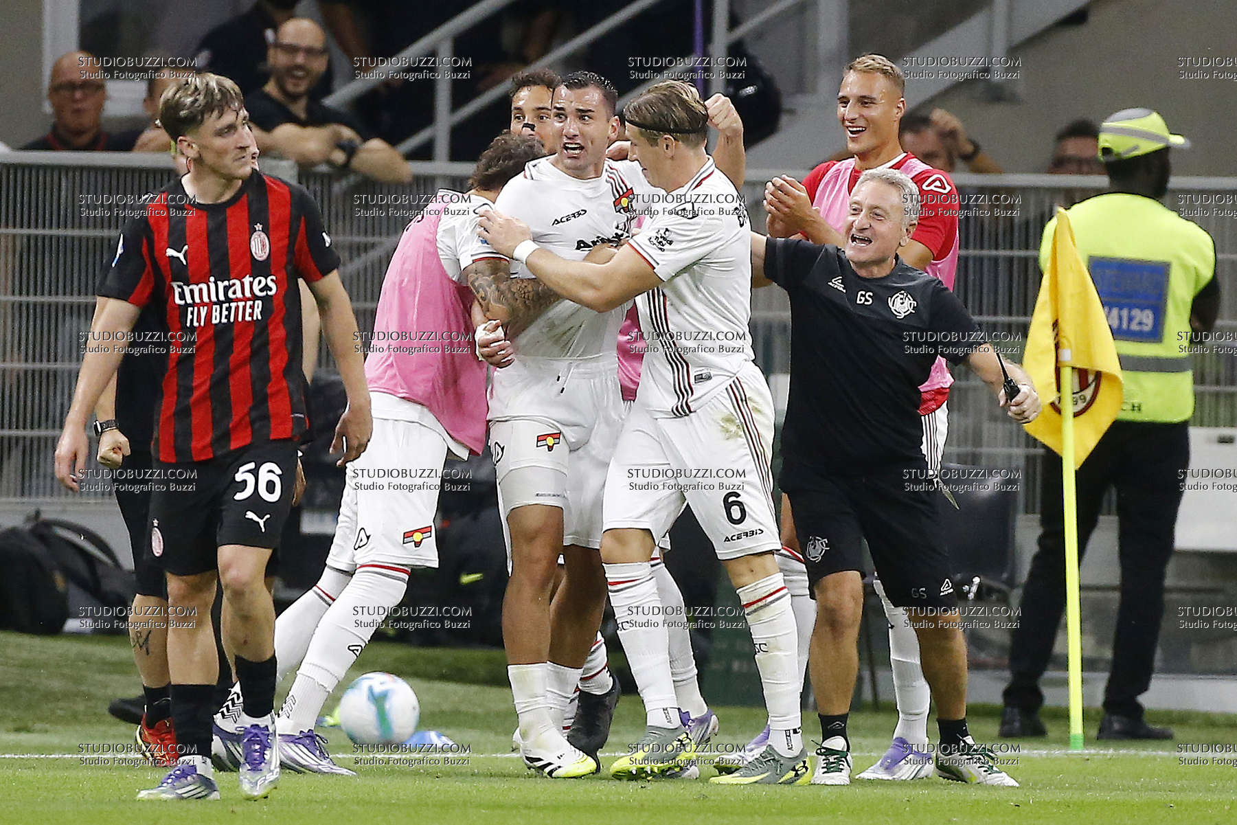 FEDERICO BONAZZOLI, Cremonese, Serie A, 2025-26, Milan vs Cremonese 23-08-2025, Esultanza, Celebration, Jubel