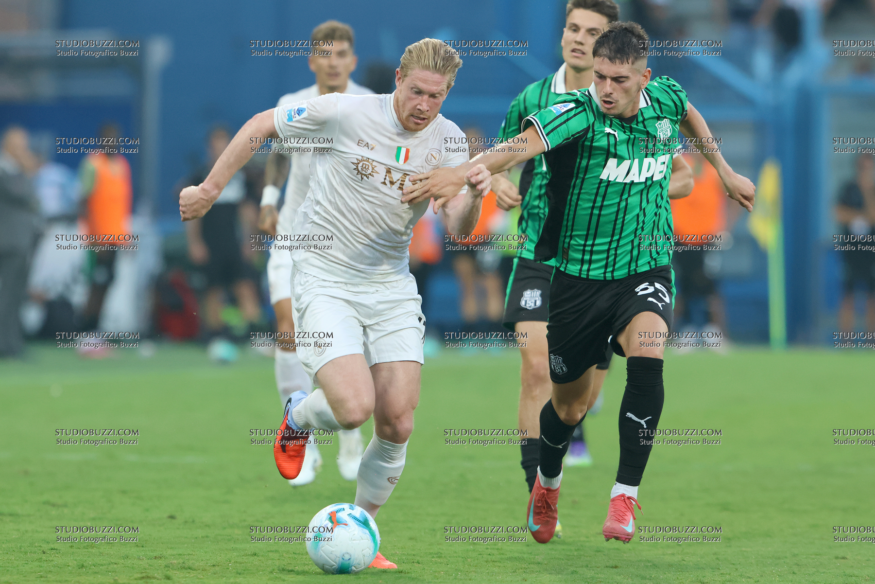 KEVIN DE BRUYNE, Napoli, LUCA LIPANI, Sassuolo, Serie A, 2025-26, Sassuolo vs Napoli 0-2, 23-08-2025, Contrasto, Action