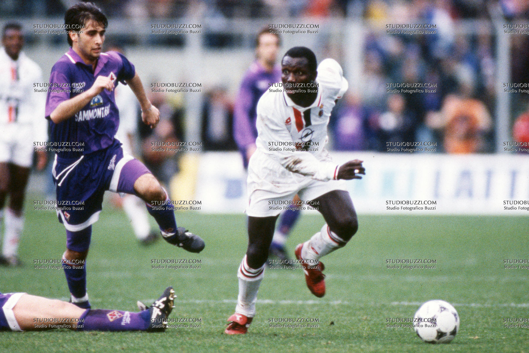 EMILIANO BIGICA, Fiorentina, GEORGE WEAH, Milan, Serie A, 1995-96, Fiorentina vs Milan 2-2, 23-12-1995, Azione, Contrasto, Action, Single shot