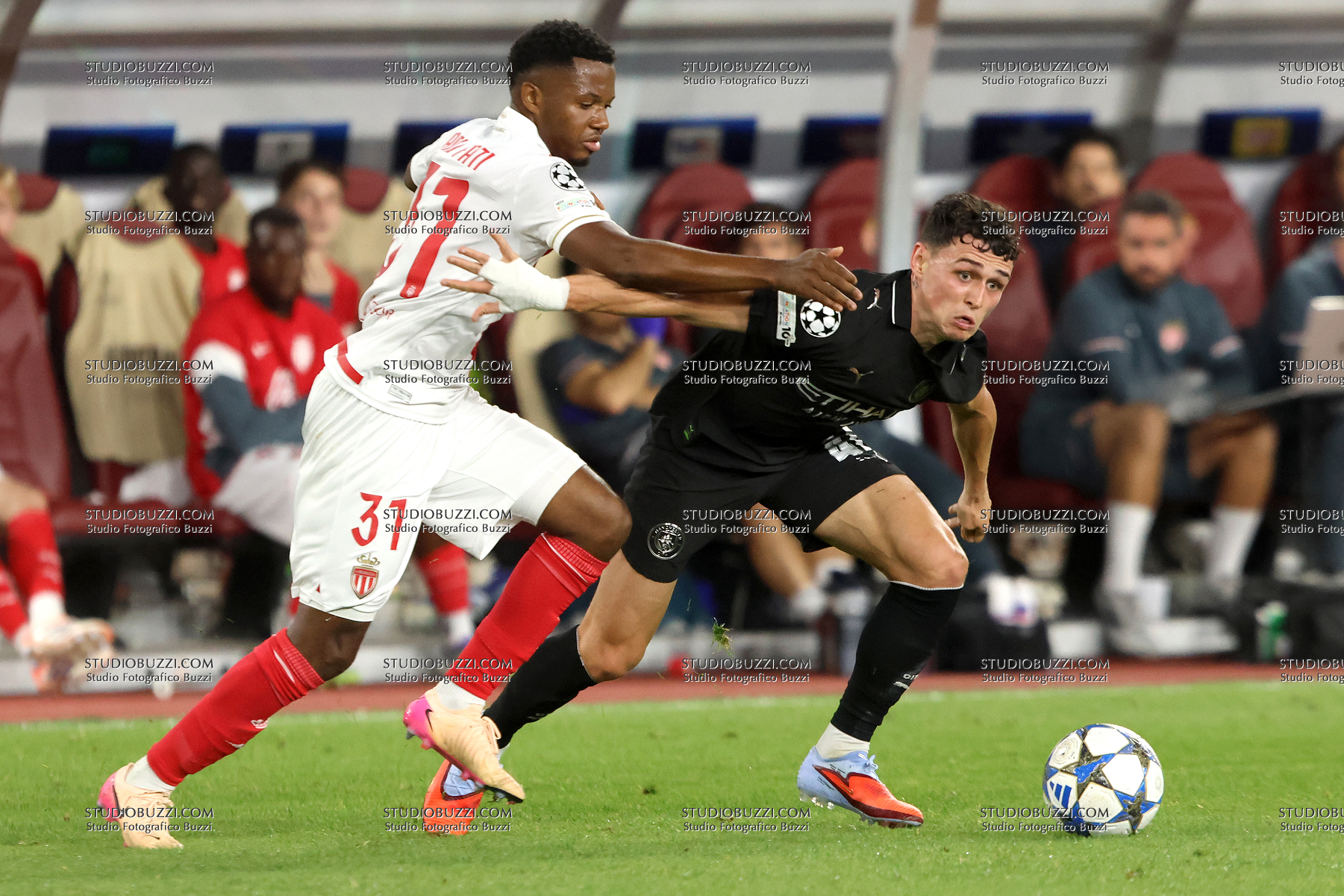 PHIL FODEN, Manchester City, ANSU FATI, Monaco, Champions League, 2025-26, Monaco vs Manchester City 2-2, 01-10-2025, Contrasto, Action