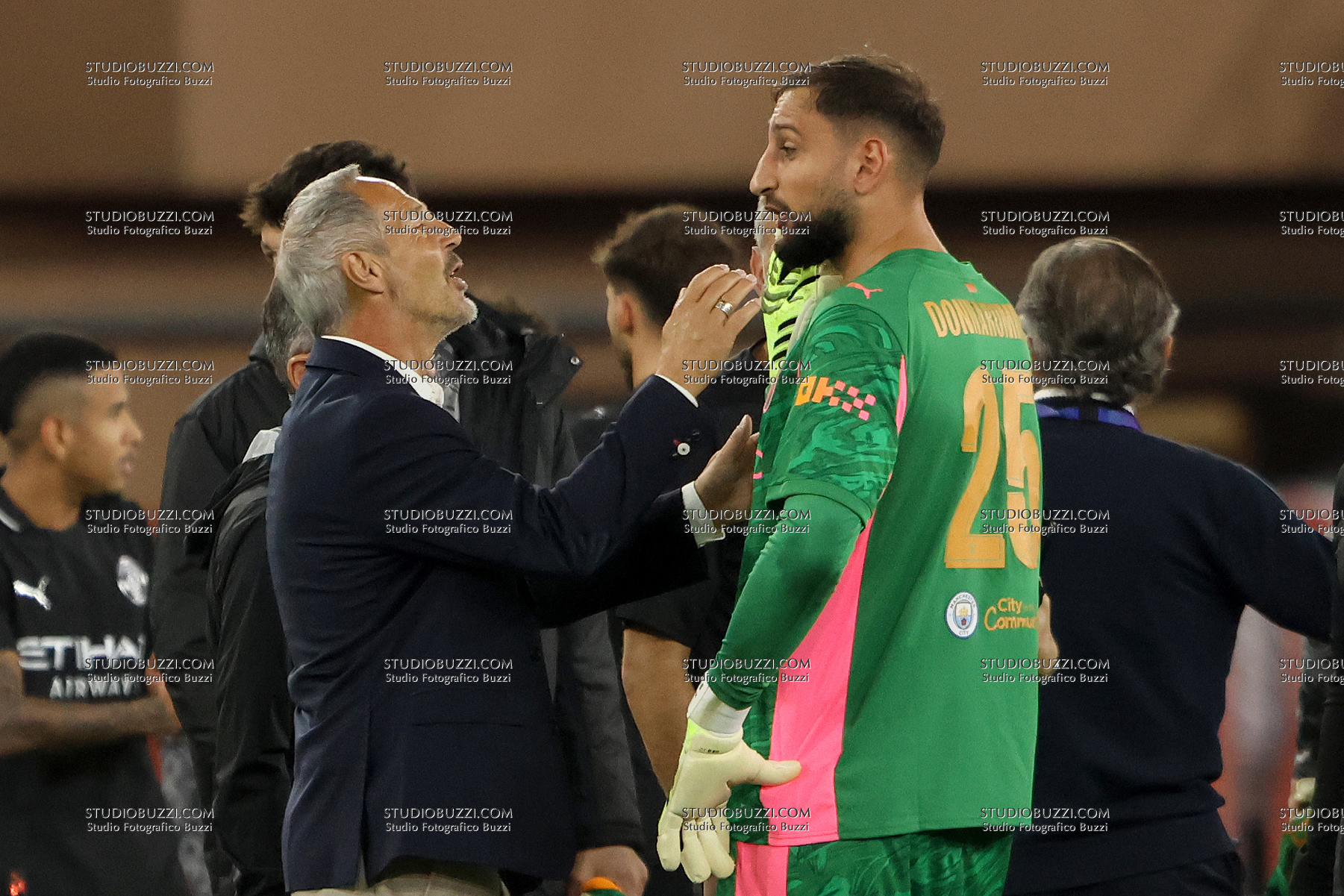 ADI HUTTER, Monaco, GIANLUIGI DONNARUMMA, Manchester City, Champions League, 2025-26, Monaco vs Manchester City 2-2, 01-10-2025, Azione, Action, Gesti, Close up