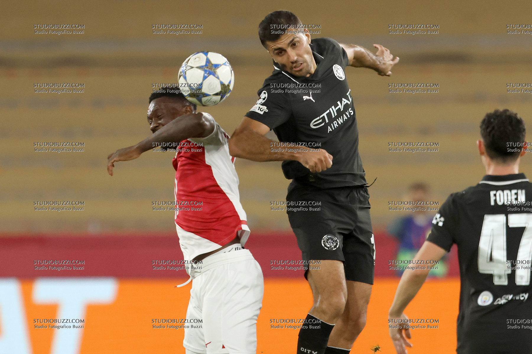 RODRI RODRIGO HERNANDEZ CASCANTE, Manchester City, FOLARIN BALOGUN, Monaco, Champions League, 2025-26, Monaco vs Manchester City 2-2, 01-10-2025, Contrasto, Action
