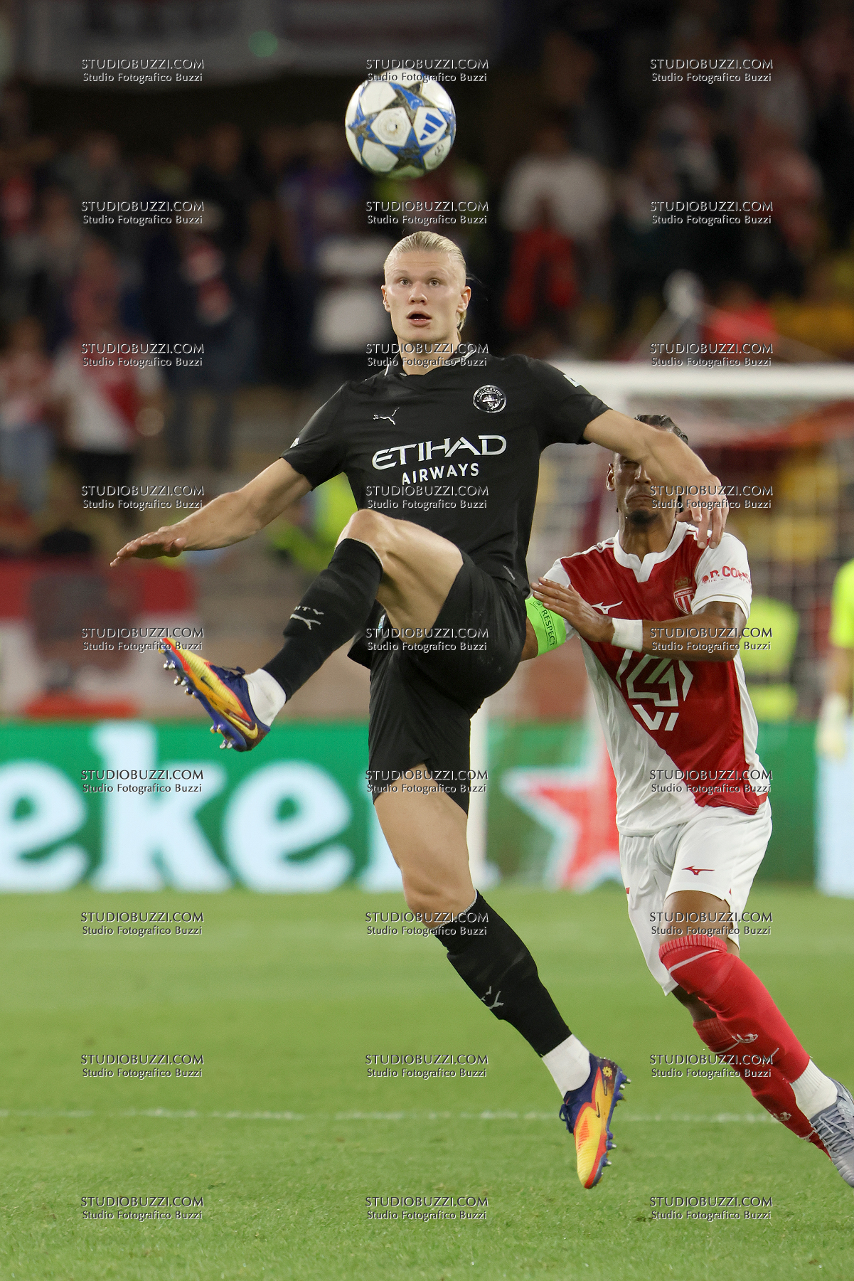ERLING HAALAND, Manchester City, Champions League, 2025-26, Monaco vs Manchester City 2-2, 01-10-2025, Azione, Action, Contrasto