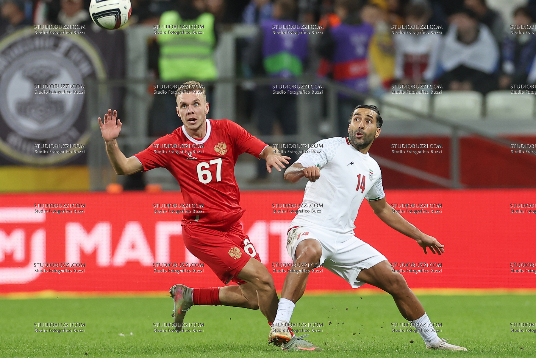MAKSIM GLUSHENKOV, Russia, SAMAN GHODDOOS, Iran, Amichevole, Friendly match, 2025-26, Russia vs Iran 2-1, 10-10-2025, Contrasto, Action