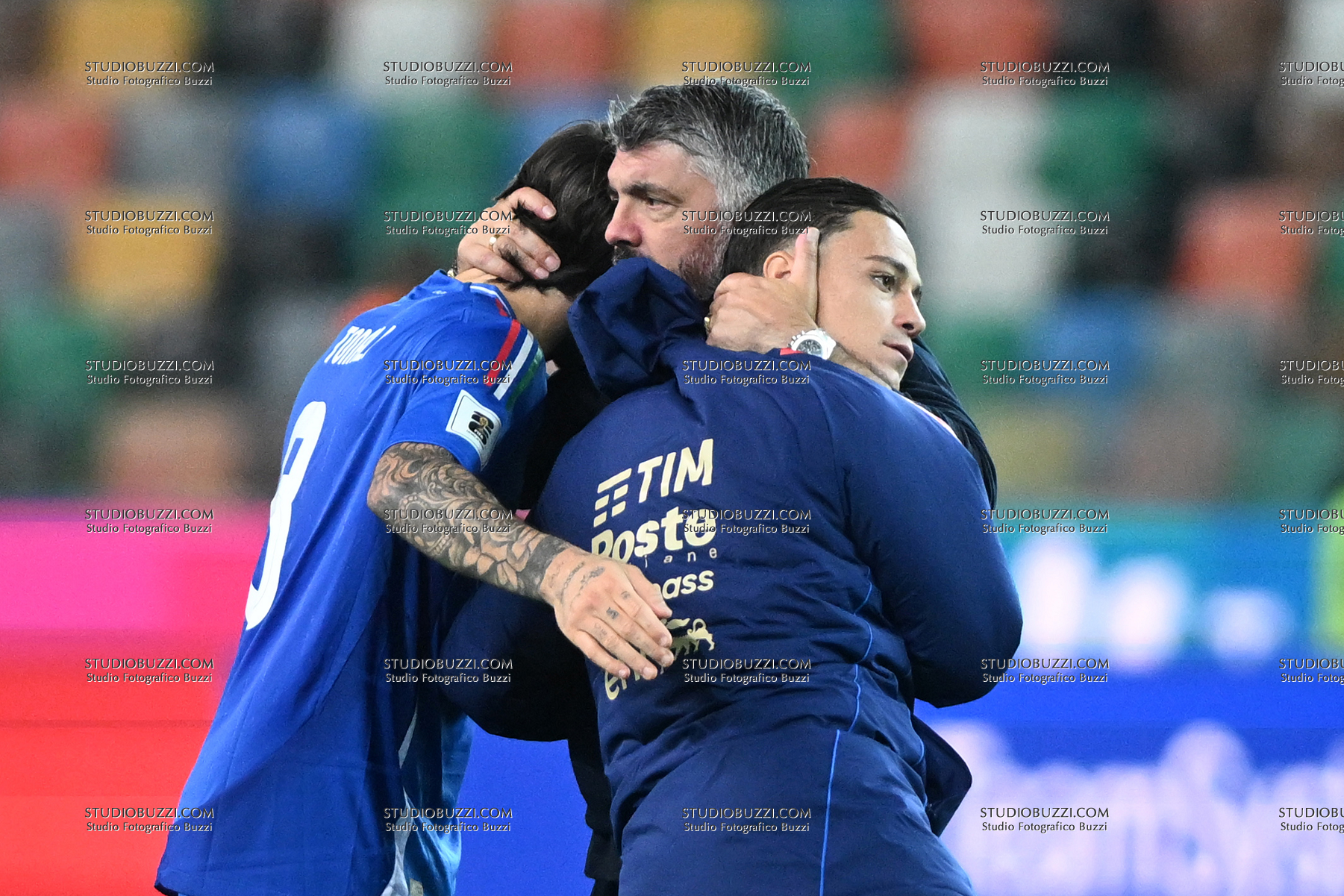 GENNARO GATTUSO, Coach Italia, SANDRO TONALI, GIACOMO RASPADORI, World Cup Qualifying Round 2025-26, Italy-Israel 3-0, azione, action, abbraccio, esultanza, jubel, joy, celebration