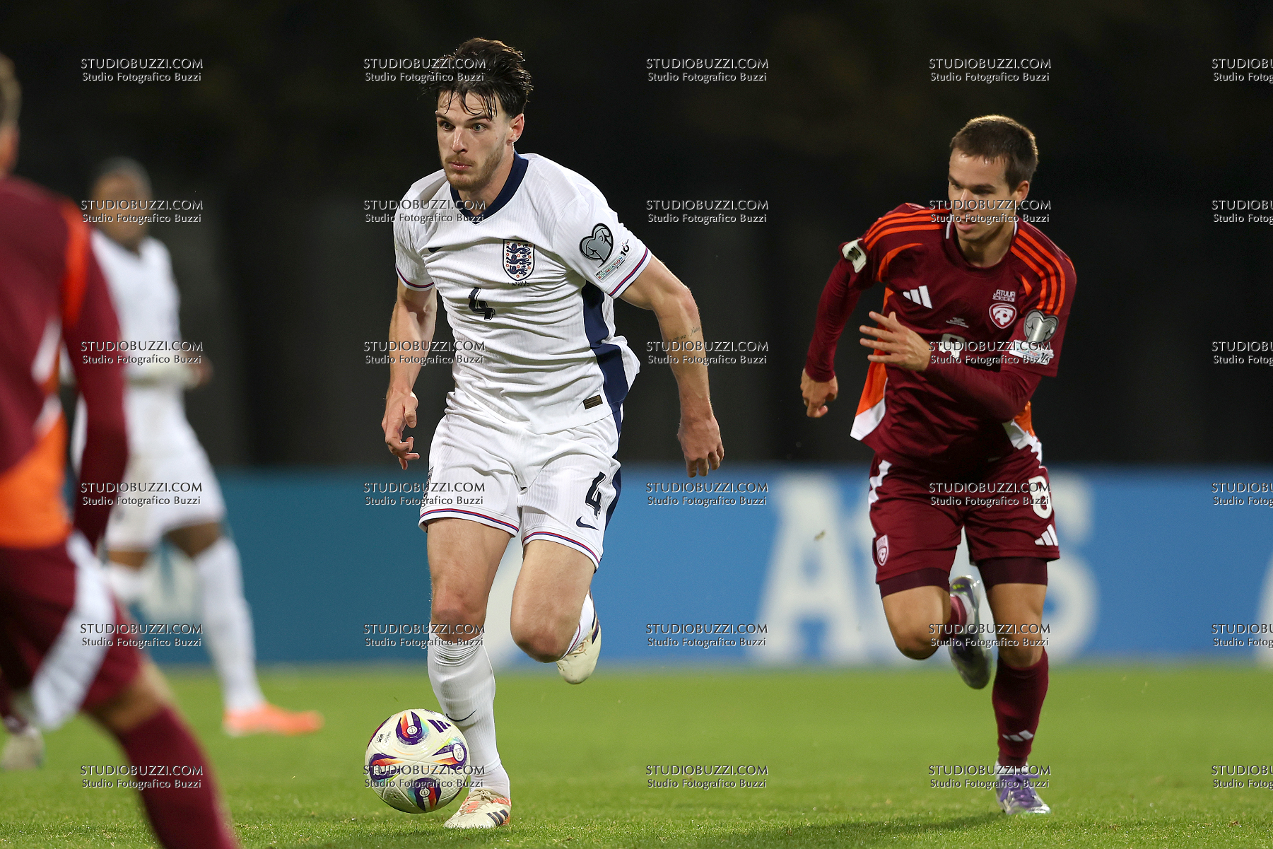DECLAN RICE, Inghilterra, RENARS VARSLAVANS, Lettonia, Qualificazioni Mondiali 2026, World Cup Qualifying, Latvia vs England 0-5, 14-10-2025, Azione, Action, Single shot, Contrasto