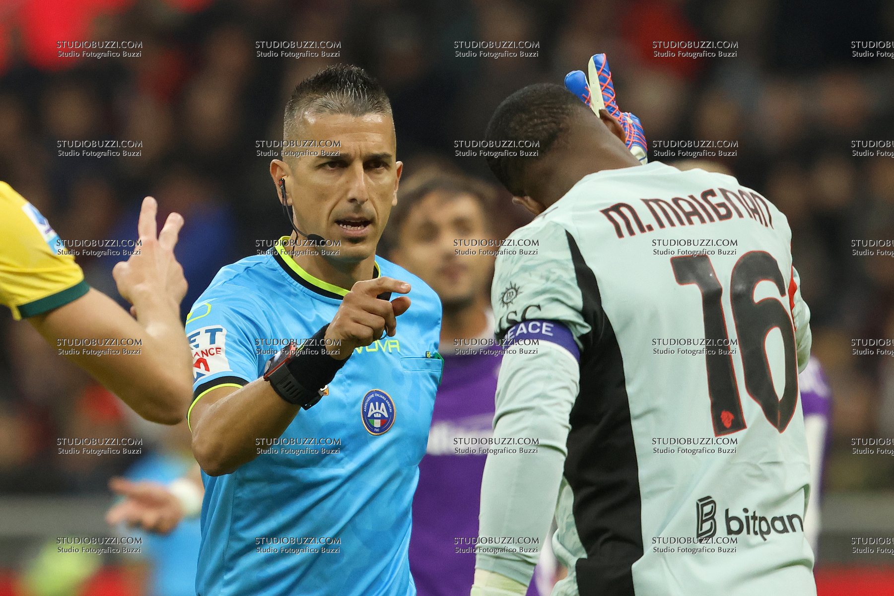 LIVIO MARINELLI, Arbitro, Referee, MIKE MAIGNAN, Milan, Serie A, 2025-26, Milan vs Fiorentina 2-1, 19-10-2025, Azione, Action