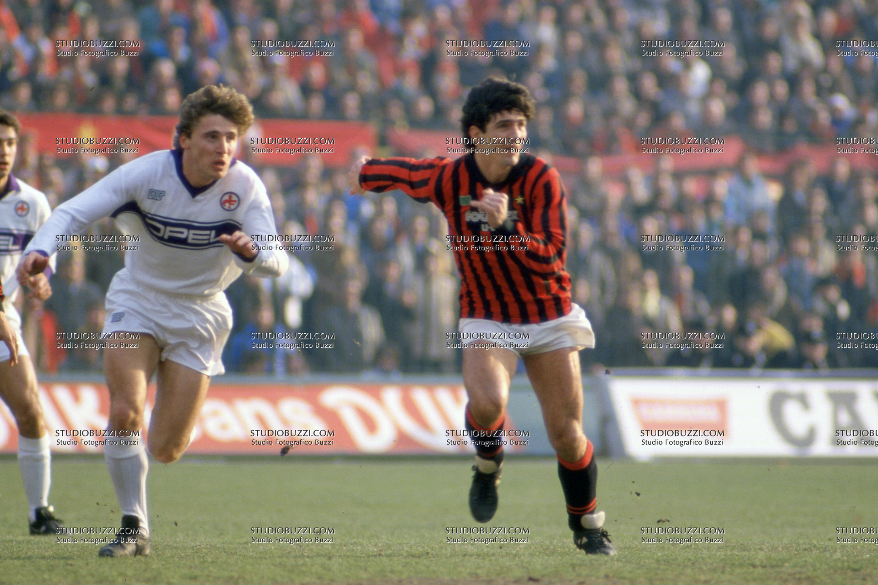 RENZO CONTRATTO, Fiorentina, PAOLO ROSSI, Milan, Serie A, 1984-85, Milan vs Fiorentina 1-0, 19-01-1986, Azione, Contrasto, Action, Single shot