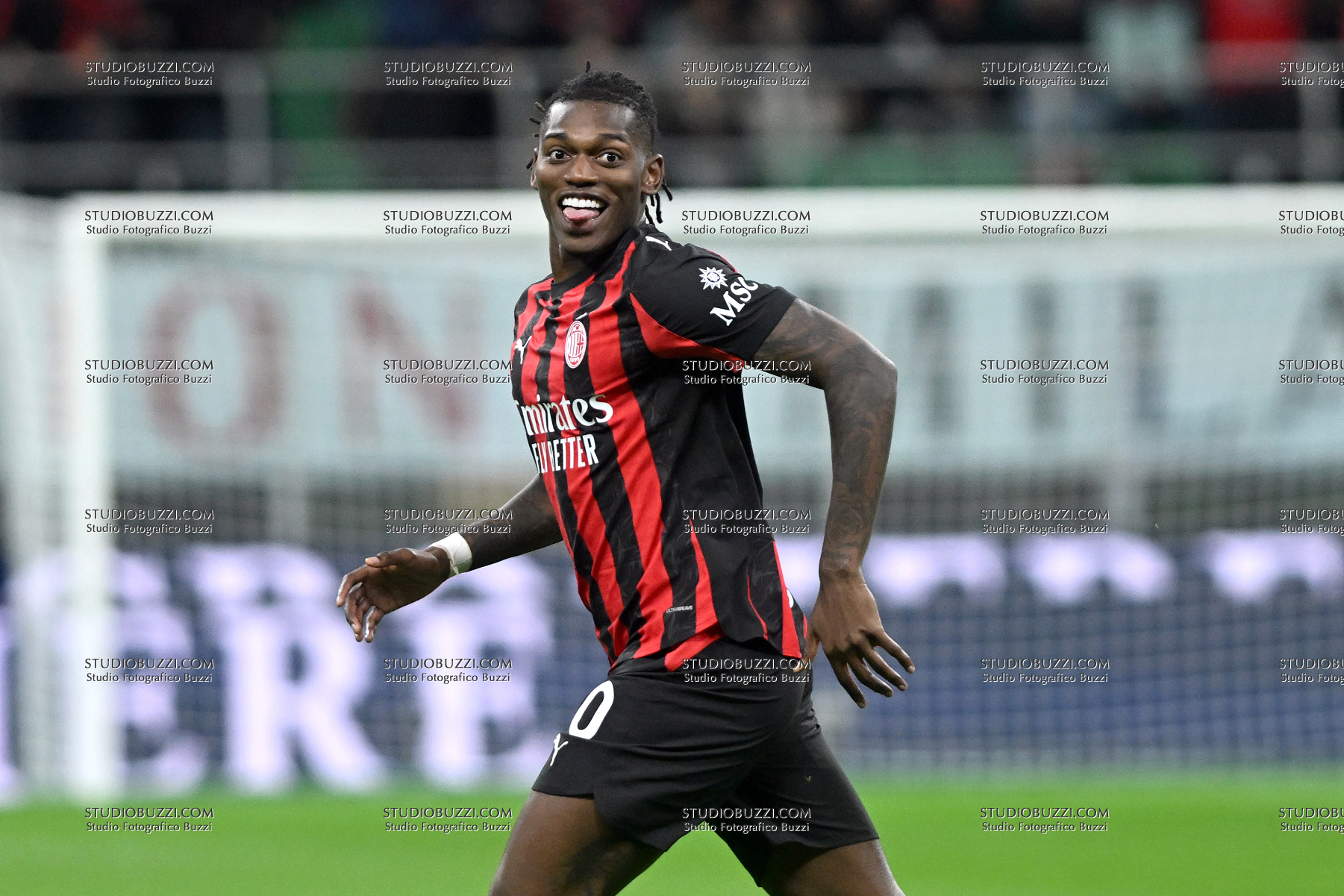 RAFAEL LEAO, Milan, Serie A 2025-26, Milan-Pisa 2-2, esultanza, jubel, joy, celebration, single shot, lingua, tongue