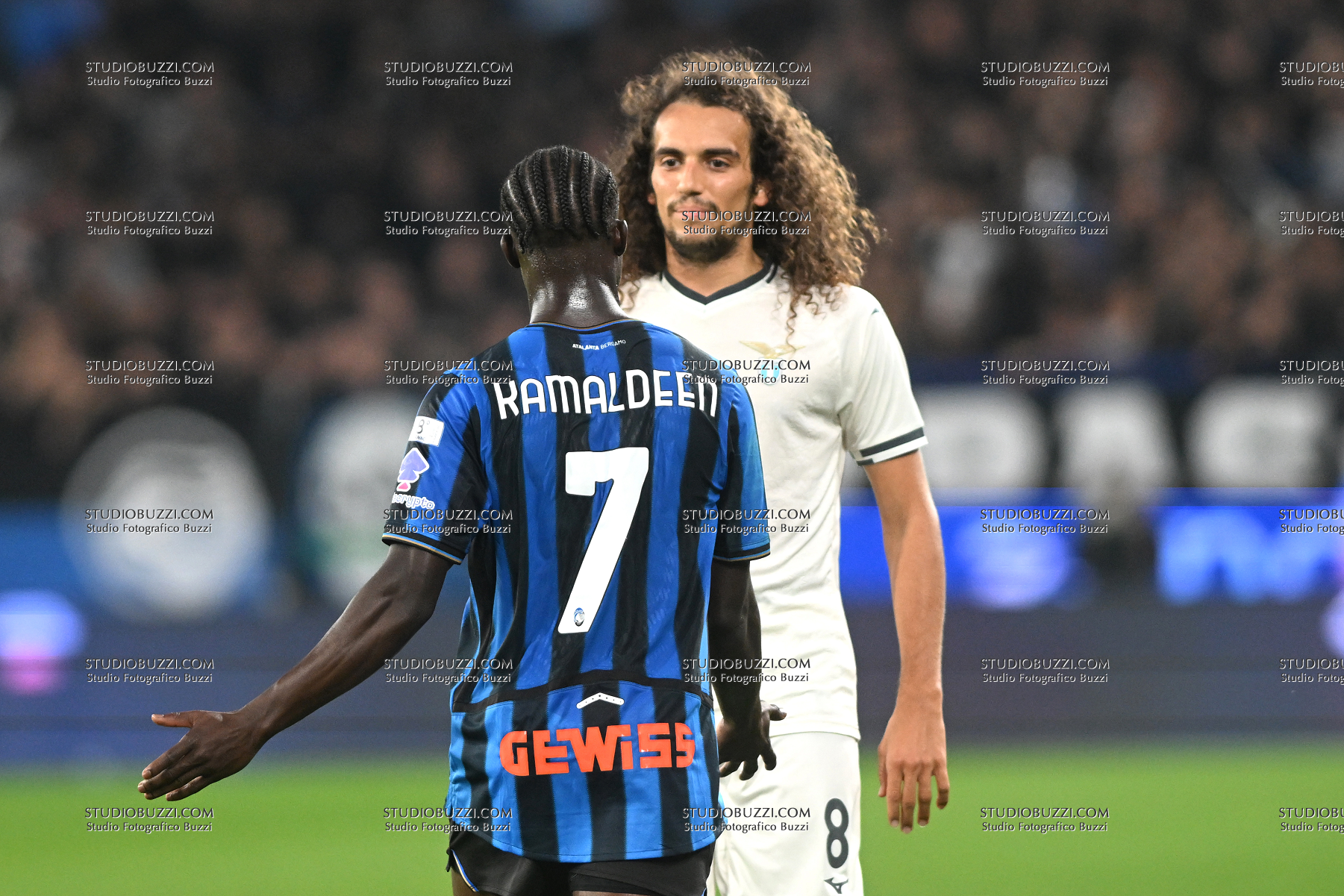 Discussione tra MATTEO GUENDOUZI, Lazio, e KAMALDEEN SULEMANA, Atalanta, Serie A 2025-26, Atalanta-Lazio 0-0, azione, action, contrasto
