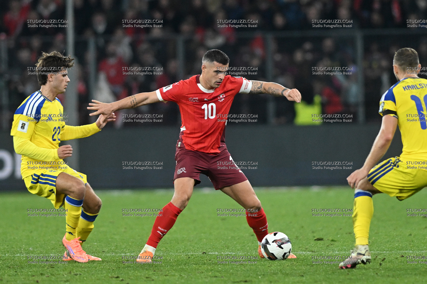 GRANIT XHAKA, Svizzera, BESFORT ZENELI, Svezia, World Cup 2026 Qualifying, Switzerland-Sweden 4-1, azione, action, contrasto